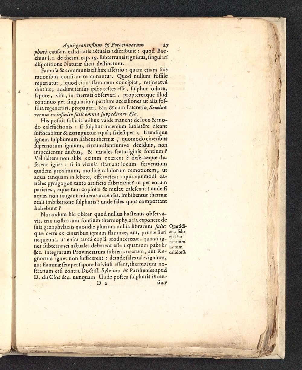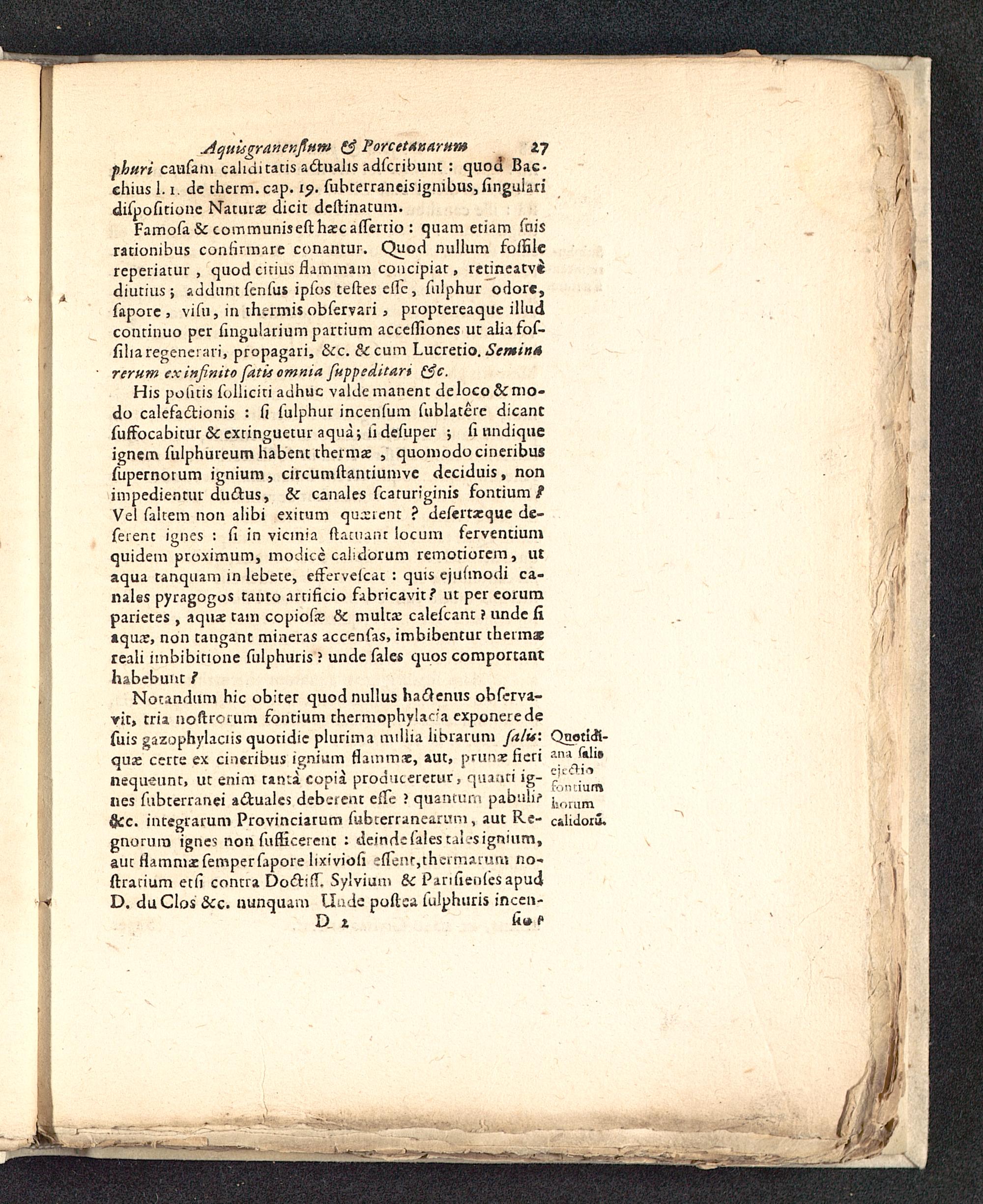 Notandum hic obiter quodnullus hac7enus obferva-rit, tria noftrorum fontium thermophylaca exponeredefuis gazophylaciis quotidic plurima miHia librarum falu: Quotlcfi-quse certe ex cineribus ignium flammae, aut, pmnceficri amlnequeunt, ut enim tantacopia procmtererur, quanti ig- .°nes fubterranei adtualcs deberent effe ? quantum pabuh> i„ aumficc. integrarum Provinciarum fubterranearum, aut Re- calidoru,gnorum ignes non fufficerent : deindefalestalesignium,aut fiammaefemperfapore lixiviofi enent,thermarum no-ftrarium etfi contra Doctiff. Sylvium & Panfienles apudD. duCIos &c. nunquam tlude poftsa fulphuris incen-