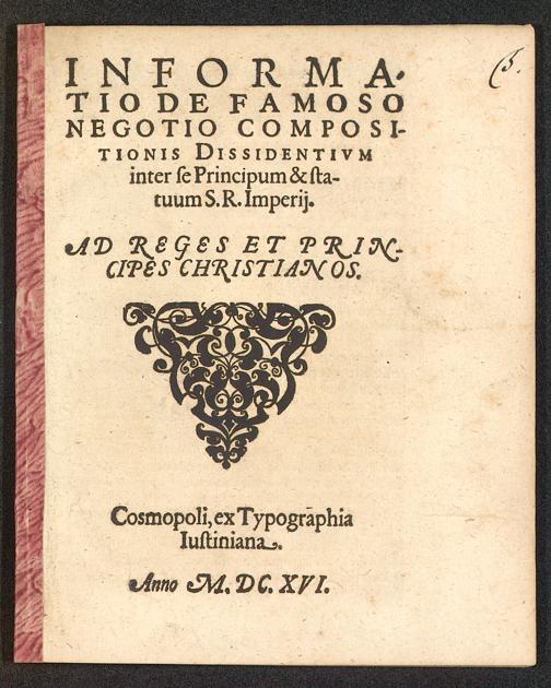 Informatio De Famoso Negotio Compositionis Dissidentium inter se Principum & statuum S.R. Imperii