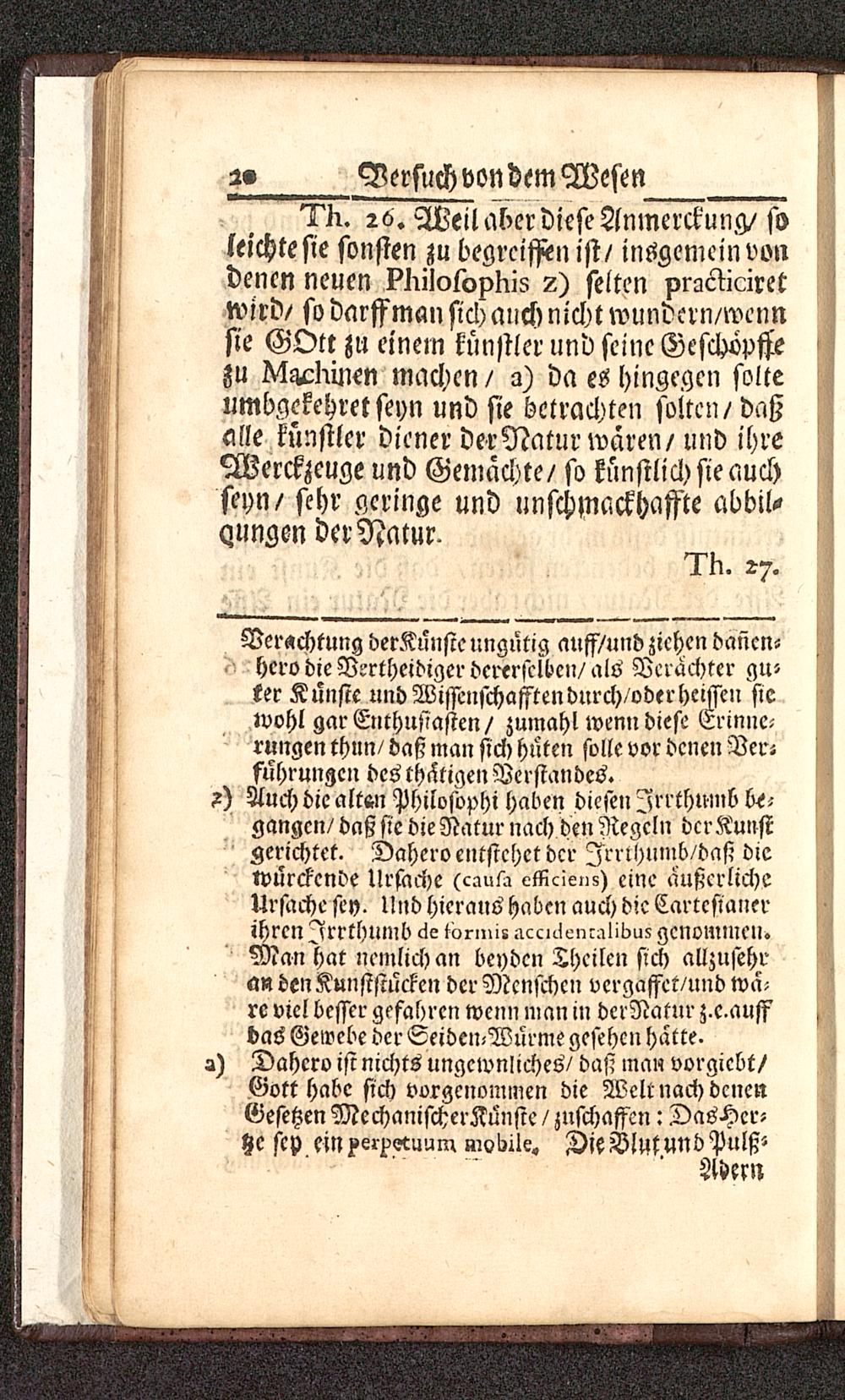 l'K. 26. Weil aber diese Anmerckung/ soleichteste sonsten zu begrciffen ist/ insgemein vondenen neuen ?KiIo5oxKi5 ^) selten przÄiciretwird/ so dnrffniKn sich auch nicht wundern/wennsie GOtt zu einem künstler und seine Geschöpftezu K^I-lmen machen / a) da es hingegen solteumbgekehret seyn und sie betrachten sotten / daßalle künstler biener derNatur waren/und ihreWerckzeuge und Gemachte/ so künstlich sie auchseyn / sehr geringe und unschMckhaffte abbil-qungen derNatur.