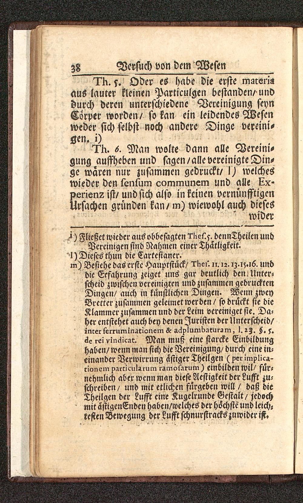 6. Man wolte dann alle Vereini-gung auffheben und sagen/alle vereinigte Din-ge wären nur zusammen gedruckt/ I) welcheswieder den lenlum communem und alle üx-perien? ist/ und sich also in keinen vcrnünfftigcnUrsachen gründen kan/m) wiewohl auch dieses