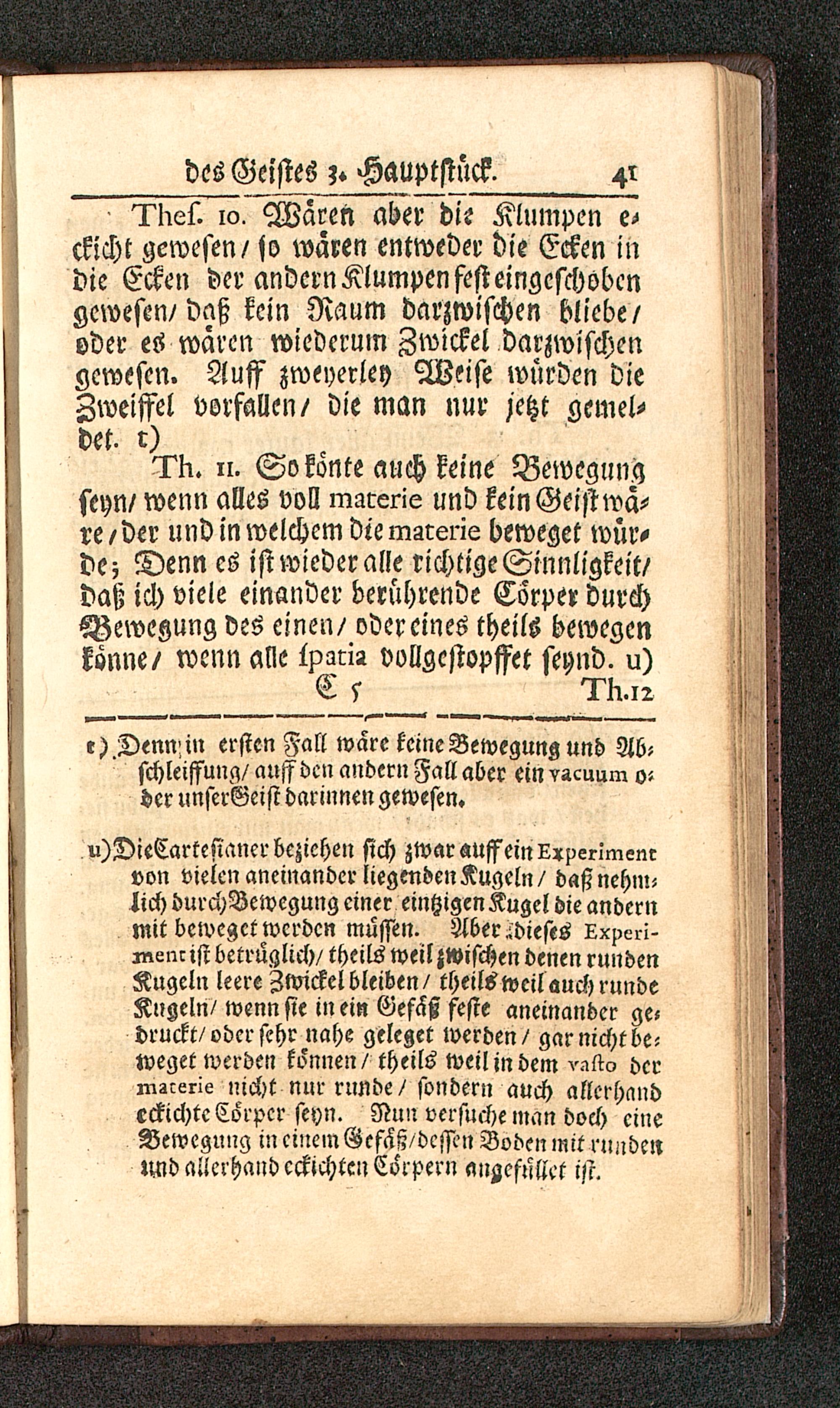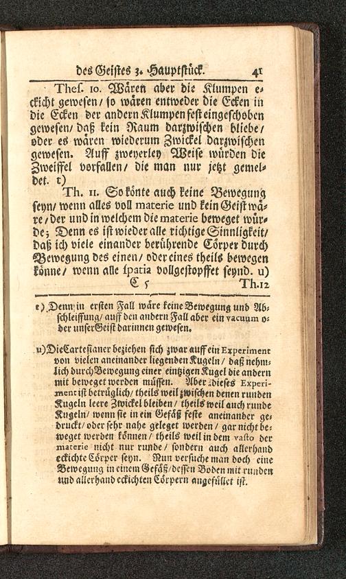 ?n. ii. So konte auch keine Bewegungseyn/ wenn alles voll maccrie und kein Geistwä-re/der und in welchem die mgrerie beweget wür-de; Denn es ist wieder alle richtige Sinnligkeit/daß ich viele einander berührende Corper durchBewegung des einen/ odereines theils bewegenkönne/ wenn alle tpzris vollgcstopffet seynd. u)C s