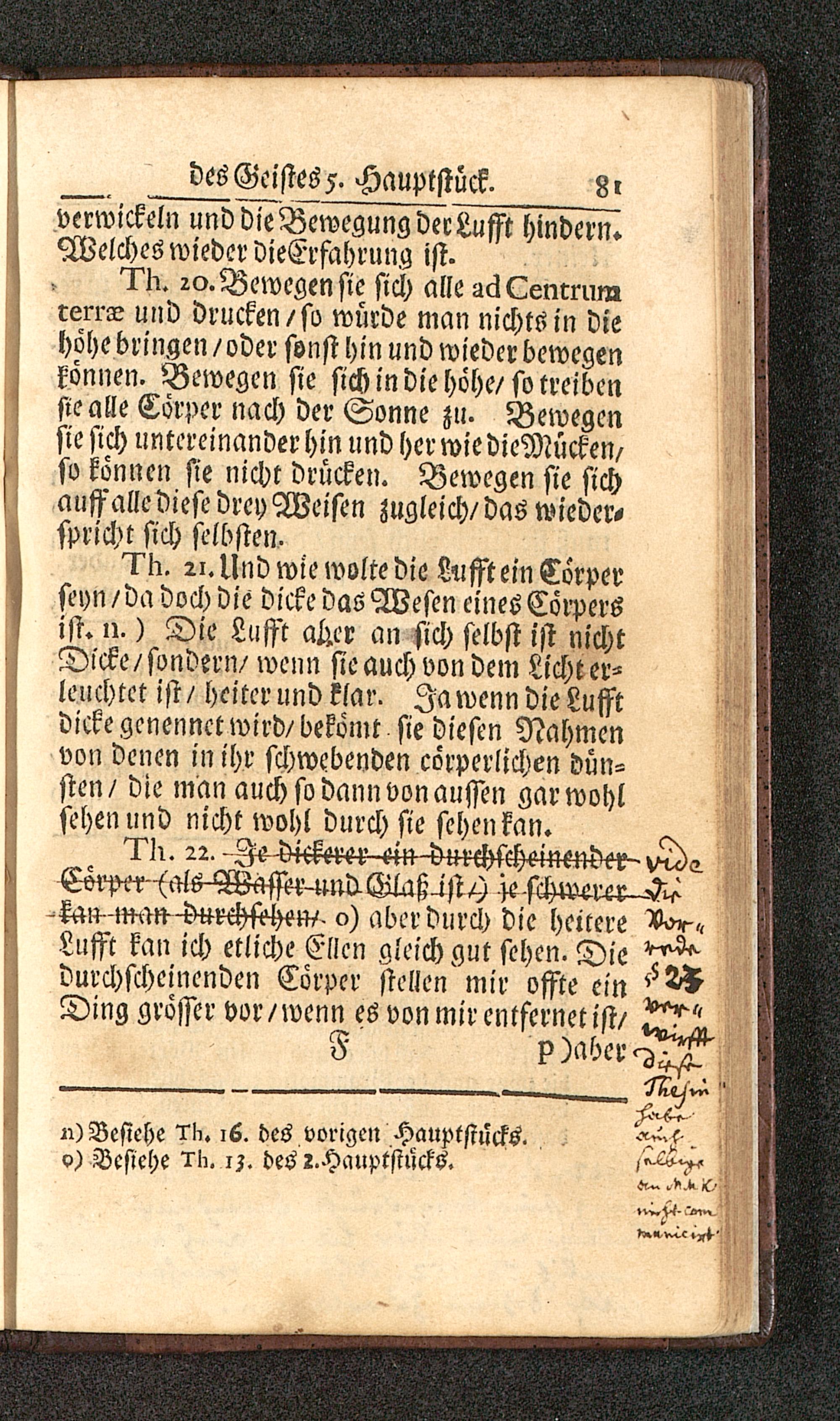 "l'li. ii.Und wie woltedie Alfft ein Cörperseyn /da doch die dicke das Wesen eines Cörpersist. n.) Die Lufft aiz.cr an sich selbst ist nichtDicke/sondern/ wenn sie auch von dem Licht er-leuchtet ist / heiter und klar. Ja wenn die Lufftdicke genennct wird/ bekömt sie diesen Nahmenvon denen in ihr schwebenden cörperlichen dün-sten/ die man auch so dann von aussen gar wohlsehen und nicht wohl durch sie sehen kan. ^