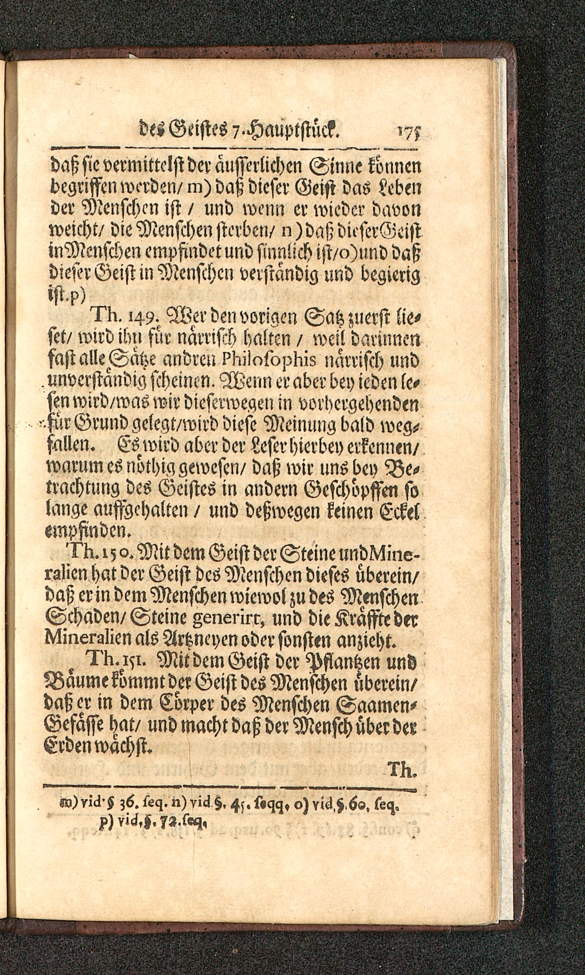 I'K. ,49. Wer den vorigen Satz zuerst lie-fet/ wird ibn für narrisch halten / weil darinnenfast alle Sahe andren k>kilc>t0pkis närrisch und, unverstandig scheinen. Wenn er aber bey ieden le-sen wird/was wir dieftrweqen in vorhergehenden' für Grund gelegt/wird diese Meinung bald weg-fallen. Es wird aber der Leser hierbey erkennen/warum es nöthig gewesen/ daß wir nns bey Be-trachtung des Geistes in andern Geschöpften solange auffgchalten / und deßwegen keinen Eckelempfinden.