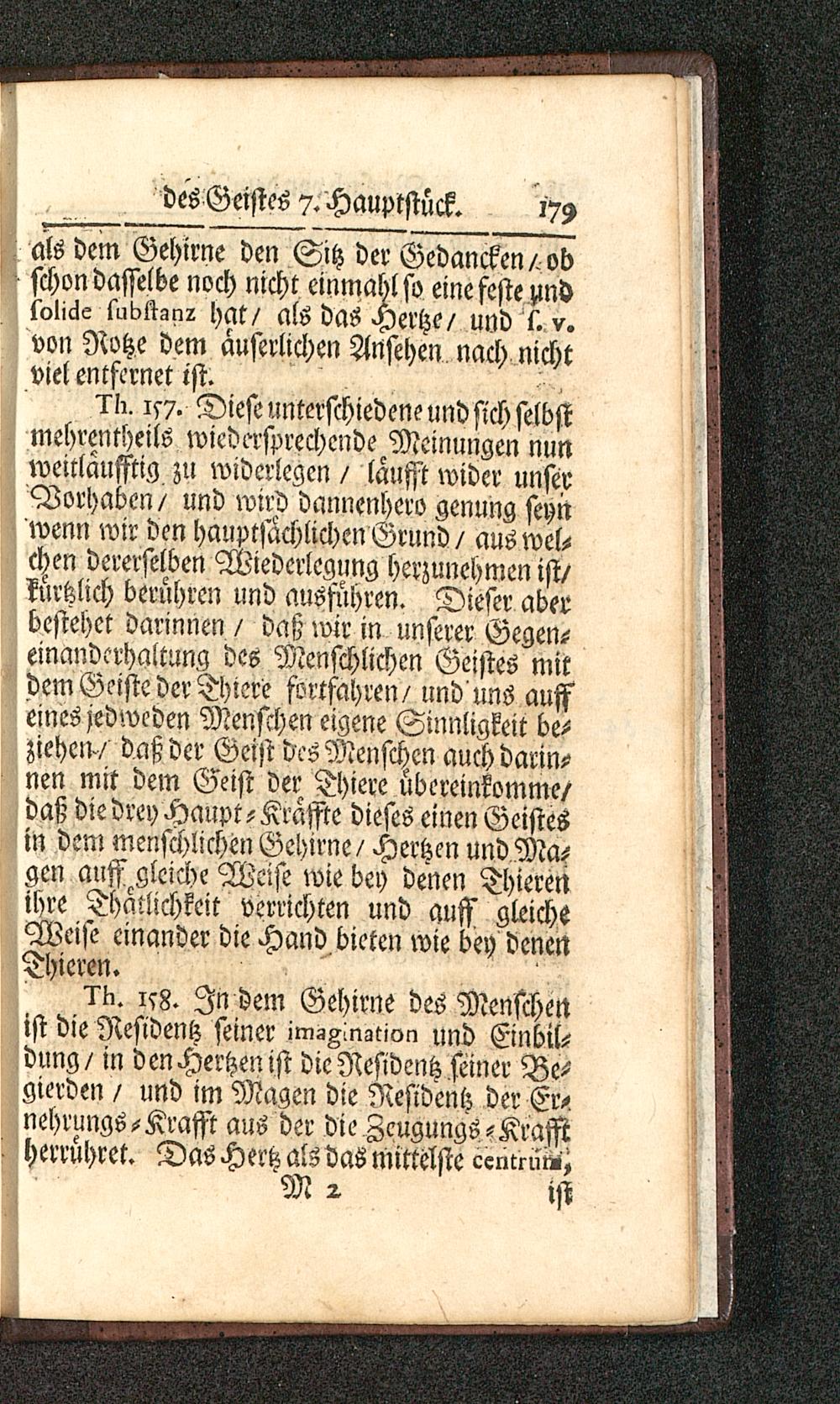158. In dem Gehirne des Menschenist die Residentz seiner imz^nation und Einbil-dung/ in den Hertzen ist die Residentz seiner Be-gierden / und im Magen die Residentz der E»,nehrungs-Krafft aus der die Zcugungs -Kraffiherrühret. Das Hertz als das Mittelste cemru«;