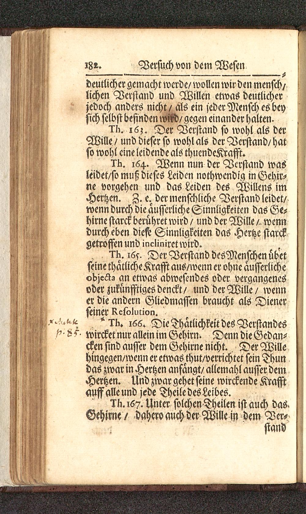 16s. Der Verstand dcsMcnschen übetseine thätliche Krafft aus/wenn er ohne ausserlichevbjeÄ-, an etwas abwesendes oder vergangenesoder zukünfftiges denckt/ und der Wille / wenner die andern Gliedmassen braucht als Dienerseiner Resolution.. /..^ 166. Die Thätlichkeit des Verstandes