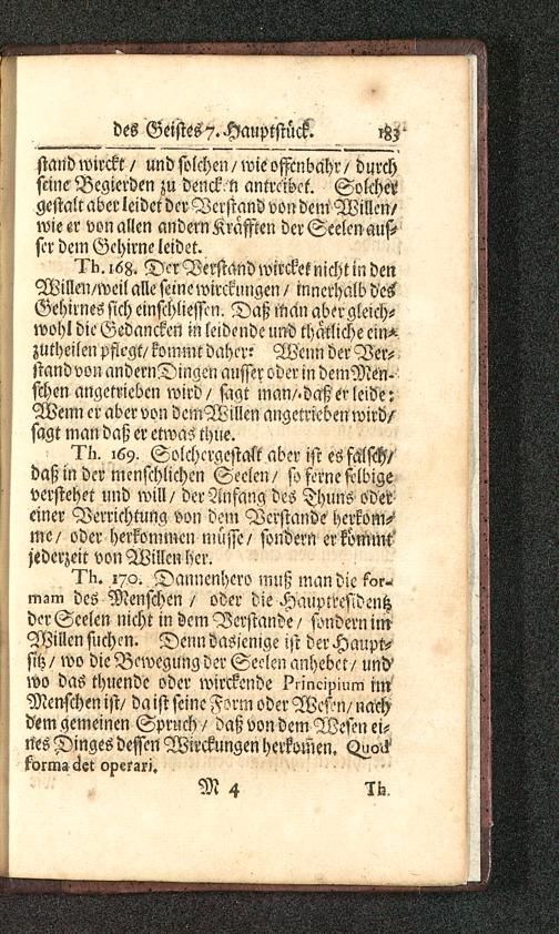 I'K. 169. Solchergestalt aber ist es falsch/daß in der menschlichen Seelen/ so ferne selbigeverstehet und will / der Anfang des Thuns odedeiner Verrichtung von dem Verstände hcrkom-'mc/ oder herkommen müsse/ sondern er kömmt'jederzeit von Willen ber.