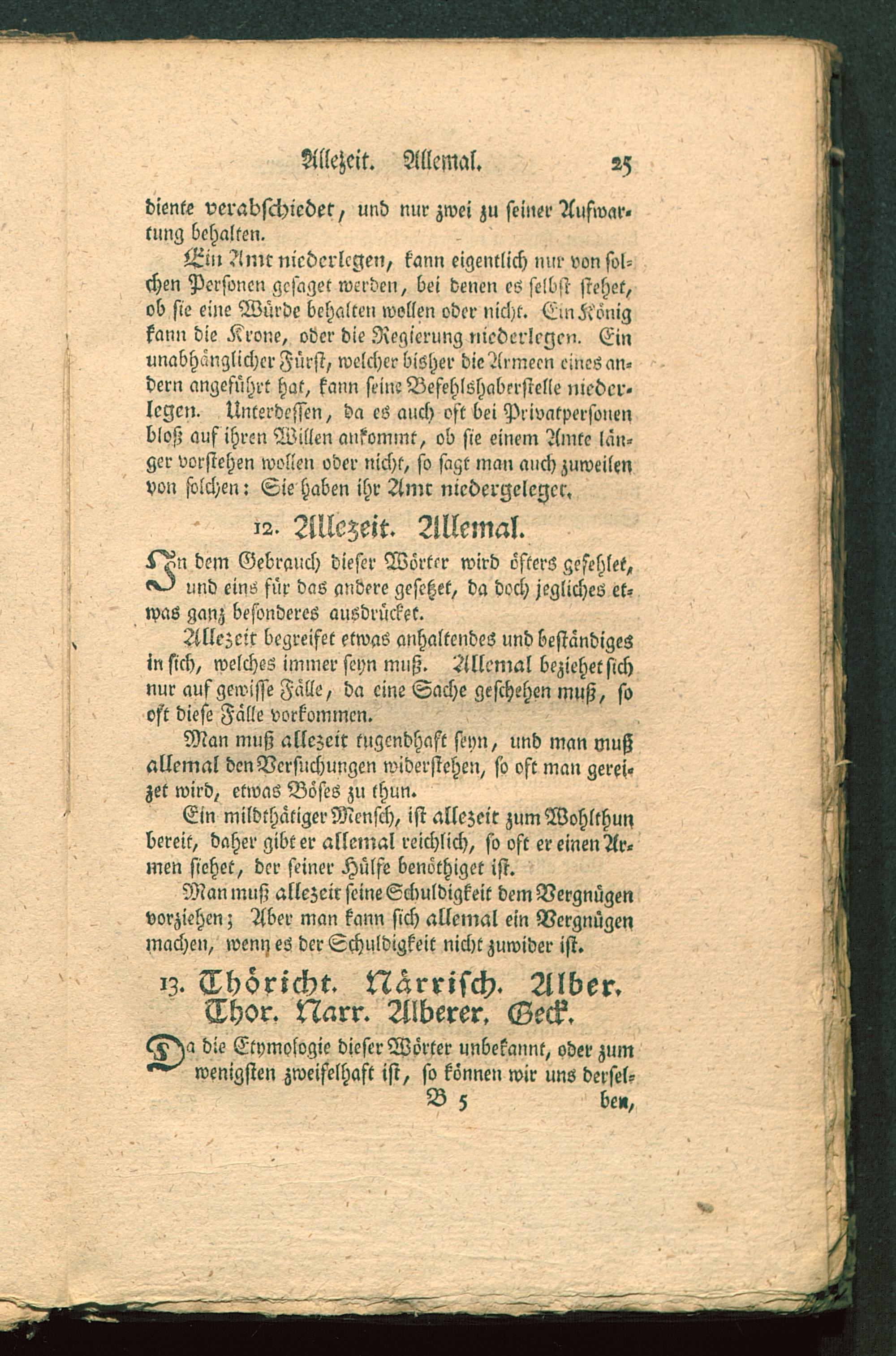 Allezeit begreifet etwas anhaltendes und bestandigesin sich, welches immer seyn muß. Allemal beziehet sichnur auf gewisse Fälle, da eine Sache geschehen muß, sooft diese Falle vorkommen.