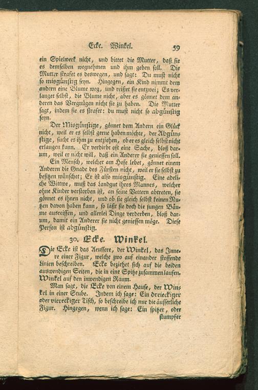 Man sagt, die Ecke von einem Hause, der 5Vin-kel in einer Stube. Indem ich sage: Ein dreieckigeroder viereckiger Tisch, so beschreibe ich nur die äusserlicheFigur. Hingegen, wenn ich sage: Ein spitzer, oder