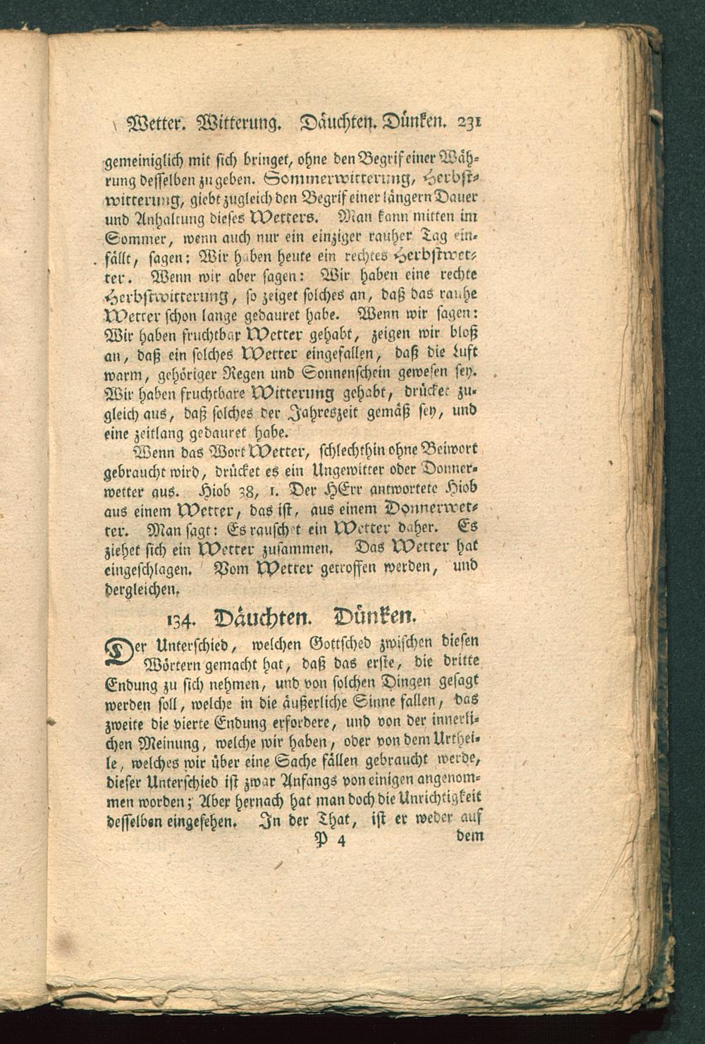 er Unterschied, welchen Gottsched zwischen diesenWörtern gemacht hat, daß das erste, die dritteEndung zu sich nehmen, und von solchen Dingen gesagtwerden soll, welche in die äußerliche Sinne fallen, daszweite die vierte Endung erfordere, und von der innerli-chen Meinung, welche wir haben, oder von dem Urthei-le , welches wir über eine Sache fällen gebraucht werde,dieser Unterschied ist zwar Anfangs von einigen angenom-men worden; Aber hernach hat man doch die Unrichtigkeitdesselben eingesehen. In der That, ist er weder auf