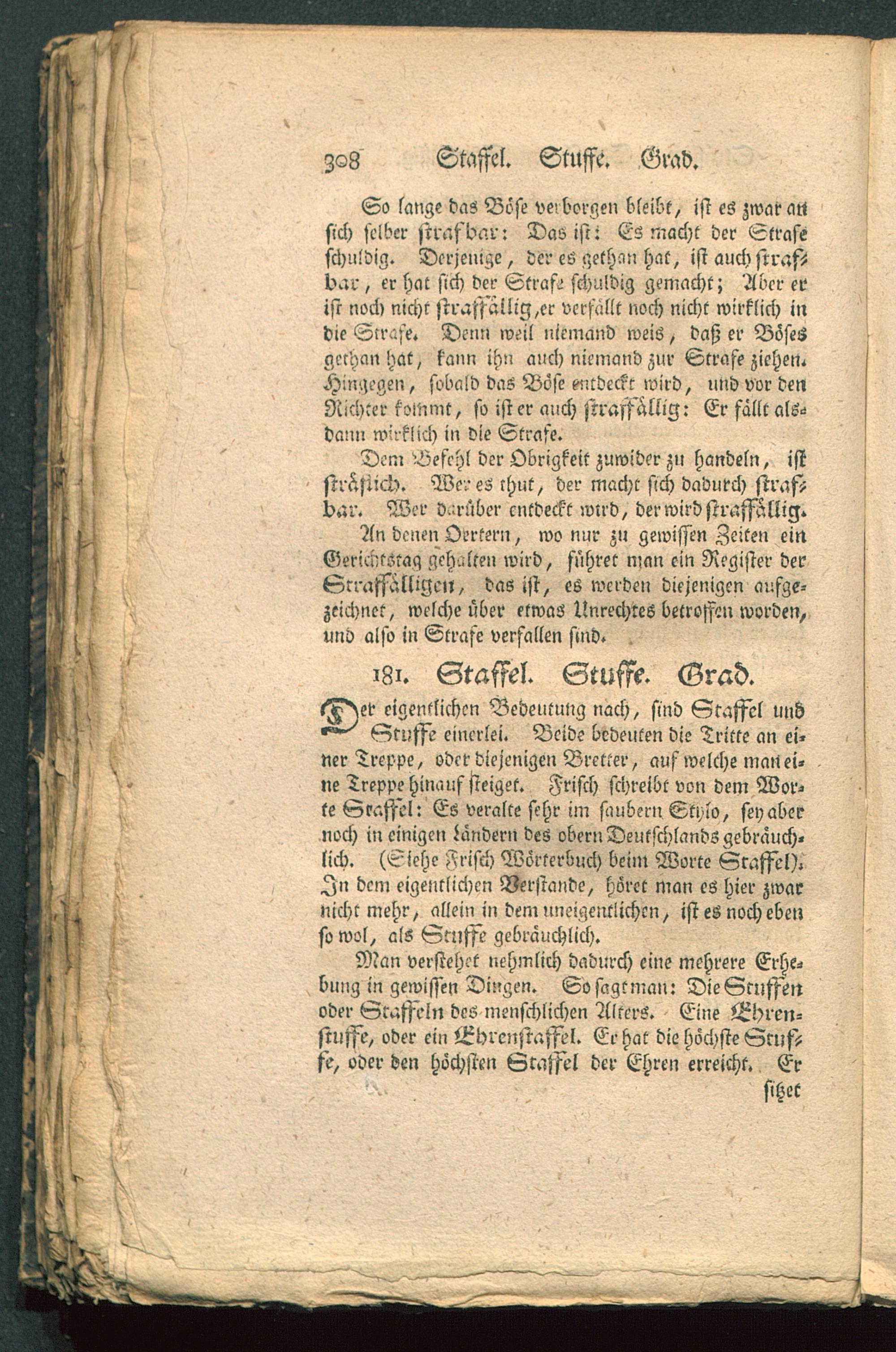 Man verstehet nehmlich dadurch eine mehrere Erhe-bung in gewissen Dingen. Sosagtman: DieSttiffenoder Staffeln des menschlichen Alters. Eine B)ren-stuffe, oder ein jLbrcnstaffel. Er hat die höchste Stuf-fe, oder den höchsten Erajfel der Ehren erreicht. Er