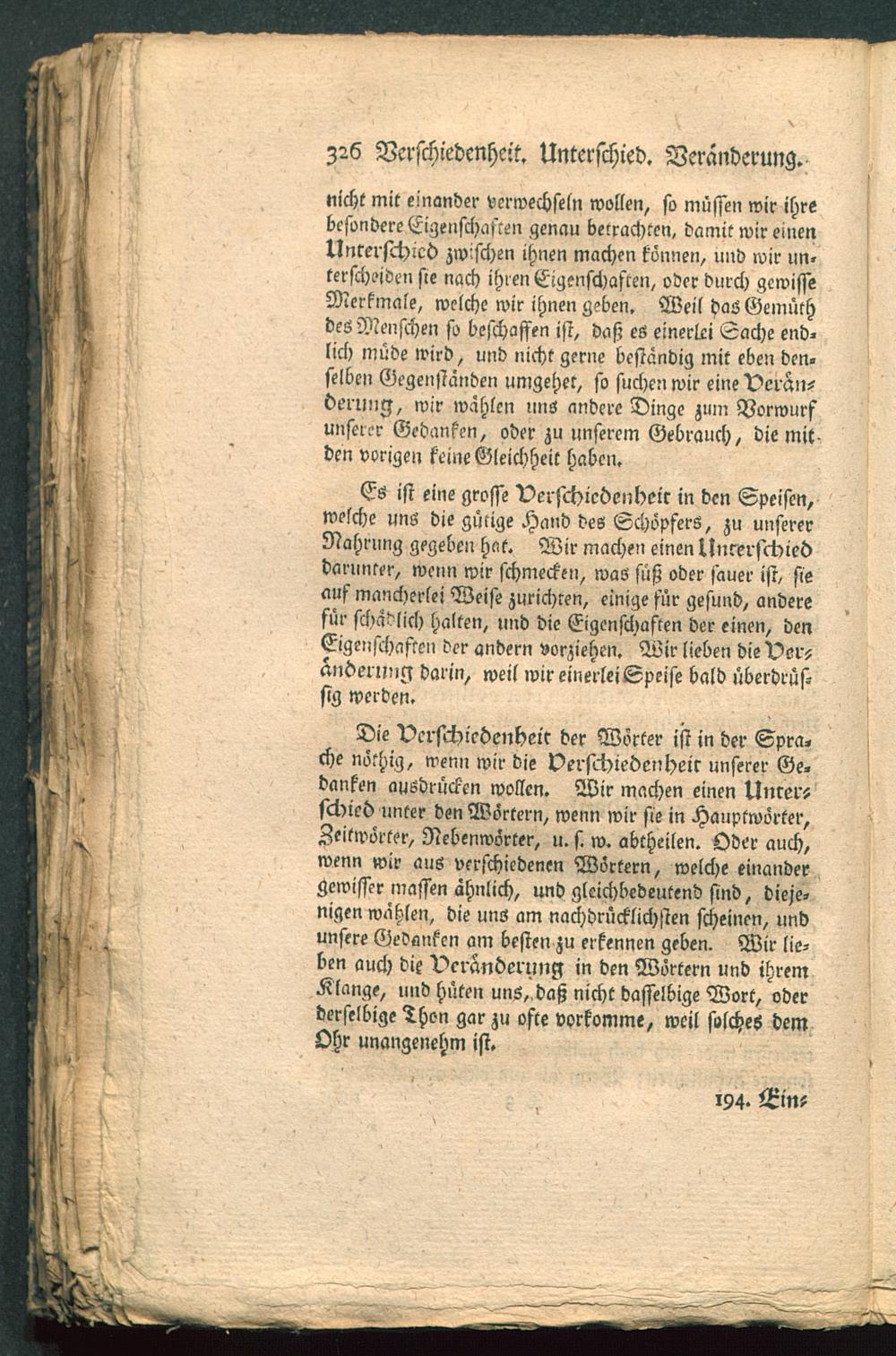 Die Verschiedenheit der Wörter ist in der Spra«ehe nöthig, wenn wir die Verschiedenheit unserer Ge-danken ausdrücken wollen. Wir machen einen Umersschied unter den Wörtern, wenn wir sie in Hauptwörter,Zeitwörter, Nebenwörter, u. f. w. abtheilen. Oder auch,wenn wir aus verschiedenen Wörtern, welche einandergewisser massen ahnlich, und gleichbedeutend sind, dieje-nigen wählen, die uns am nachdrücklichsten scheinen, undunfere Gedanken am besten zu erkennen geben. Wir lie-ben auch die Veränderung in den Wörtern und ihremKlänge, und hüten uns, daß nicht dasselbige Wort, oderderselbige Thon gar zu ofte vorkomme, weil solches demOhr unangenehm ist.