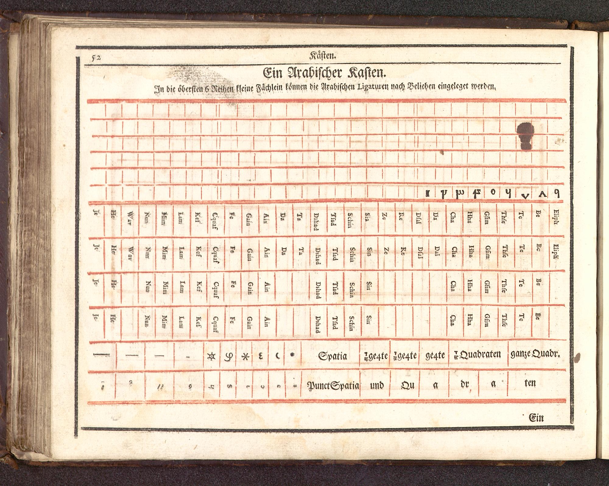 In die obersten 6 NeilM kleine Fächlcin können die Arabischen i-iZAtmen. nach Belieben eingeleget werden,