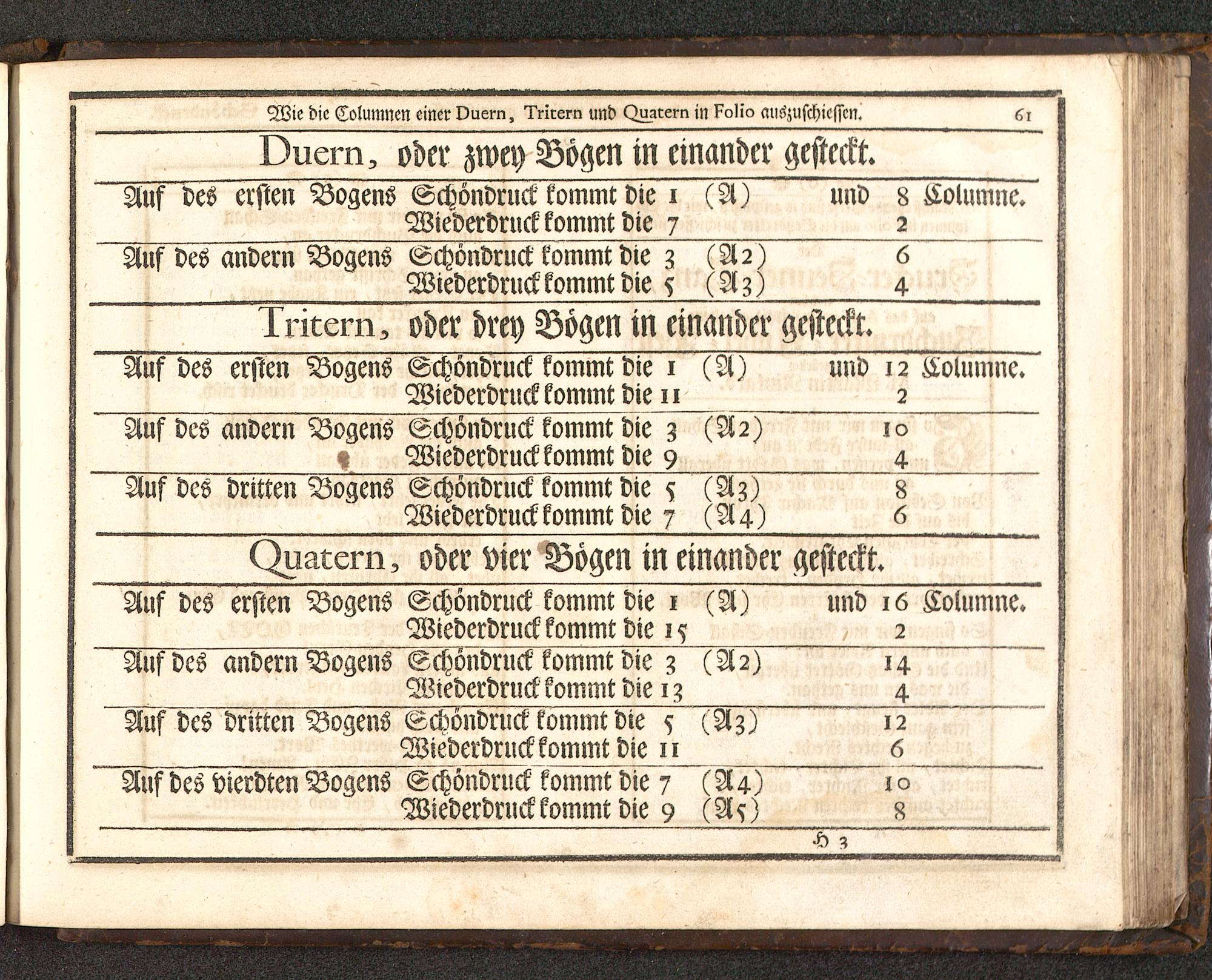 Auf des ersten Bogens Schöndruck kommt die 1 (A) und 12 Kolumne.___ Wiederdruck kommt d ie n____ 2 _