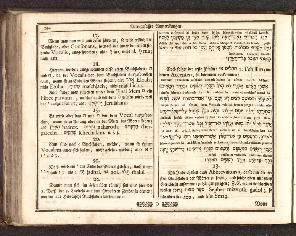 Damit man sich im iesen üben könne, soll uns hier der8. Vers, des z. Lapitels aus dem Propbettn Zephanja dienen;worinn alle Hebräische Buchstaben vorkommen: