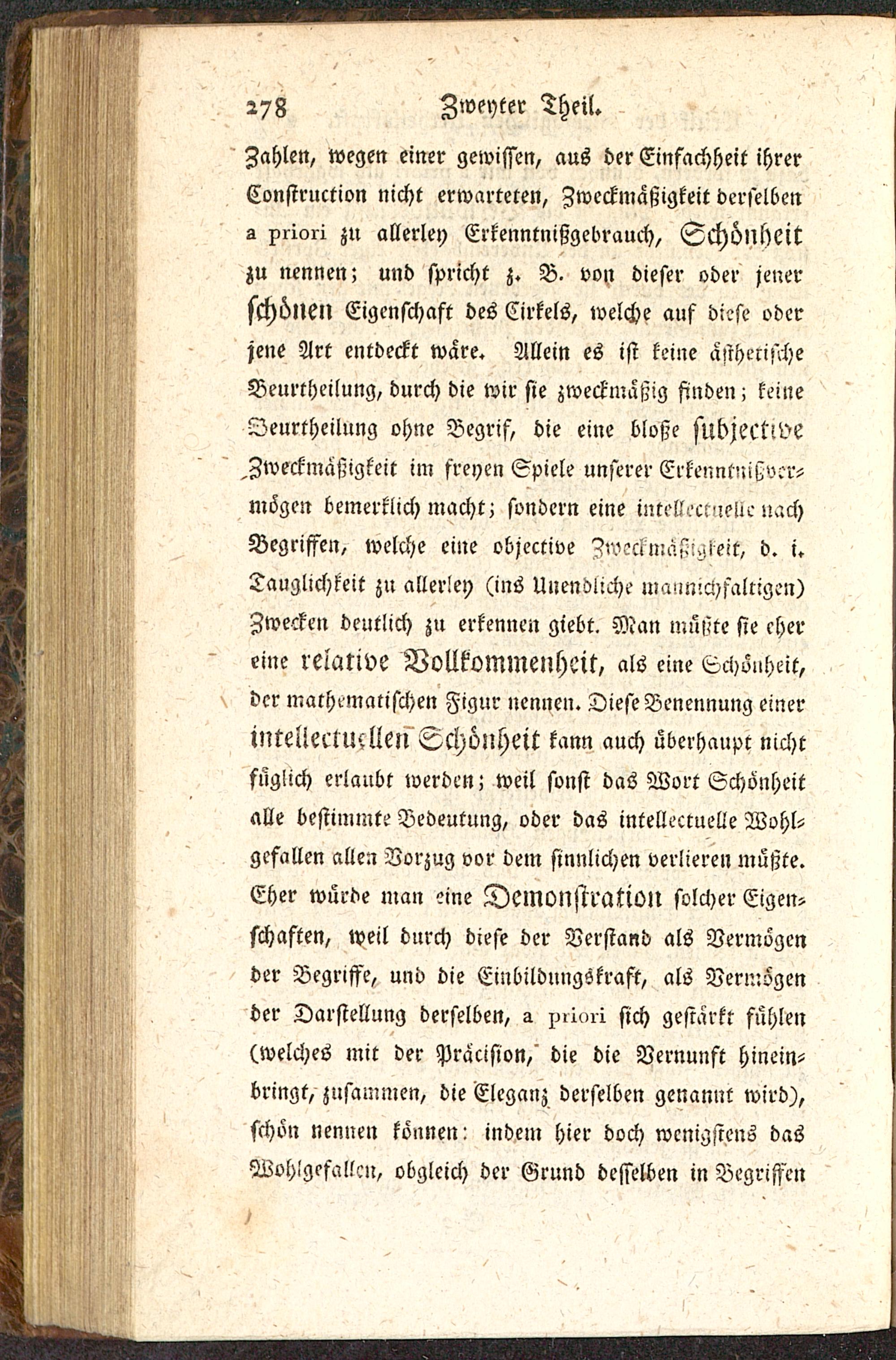 füglich erlaubt werden; weil sonst das Wort Schönheitalle bestimmte Bedeutung, oder das intelleccuelle Wohl-gefallen allen Vorzug vor dem sinnlichen verlieren müßte.Eher wurde man eine Demonstration solcher Eigen-schaften, weil dnrch diese der Verstand als Vermögender Begriffe, und die Einbildungskraft, als Vermögender Darstellung derselben, a pii^i sich gestärkt fühlen(welches mit der Präcision,' die die Vernunft hinein-bringt, zusammen, die Eleganz derselben genannt wird),schön nennen können! indem hier doch wenigstens dasWohlgefallen, obgleich der Grund desselben in Begriffen