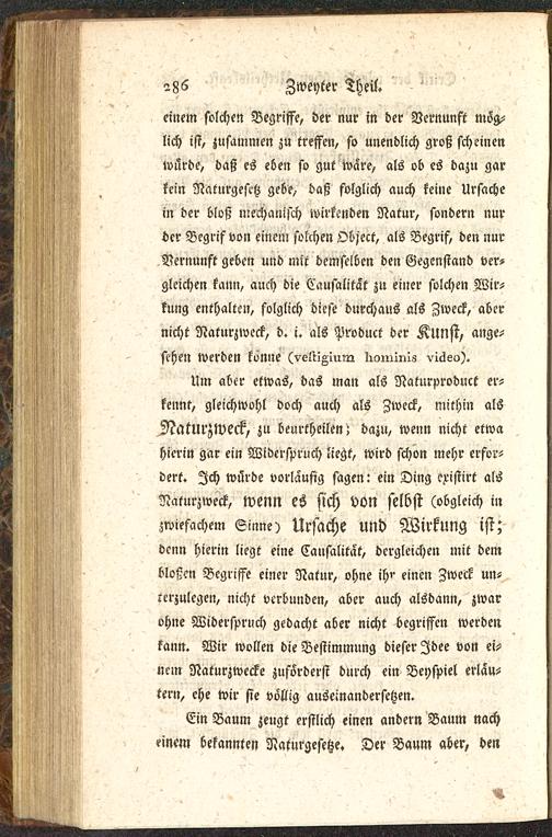 denn hierin liegt eine Cansalitat, dergleichen mit dembloßcn Begriffe einer Natur, ohne ihr einen Zweck un-terzulegen, nicht verbunden, aber auch alsdann, zwarohne Widerspruch gedacht aber nicht begriffen werdenkann. Wir wollen die Bestimmung dieser Idee von ei-nem Naturzwecke zusörderst durch ein Beyspiel erläu-tern, ehe wir sie völlig auseinandersetzen.