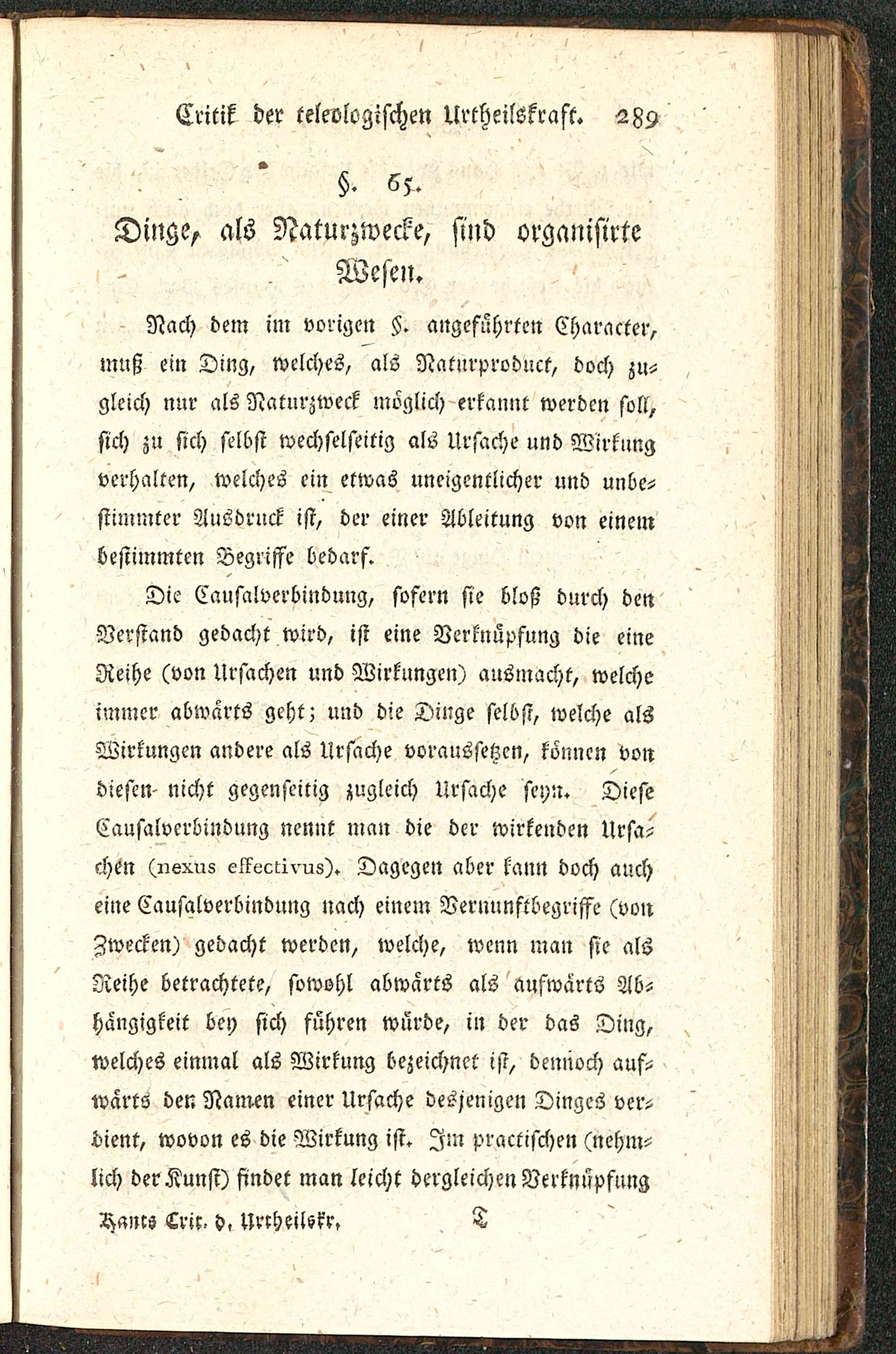 Critik der teleologischen UrtheilSkraft. 289§. 65.