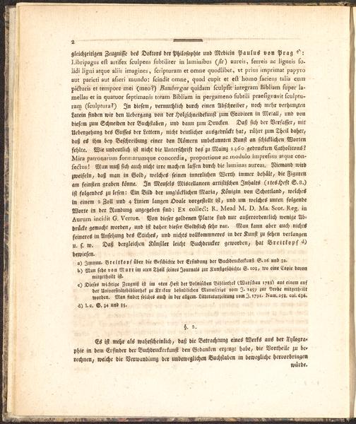 Es ist mehr als wahrscheinlich, daß die Betrachtung eines Werks aus der Xylogra-phie in dem Erfinder der Buchdruckerkunst den Gedanken erzeugt habe, die Vortheile zu be-rechnen, welche die Verwandlung der unbeweglichen Buchstaben in bewegliche hexvorbringen
