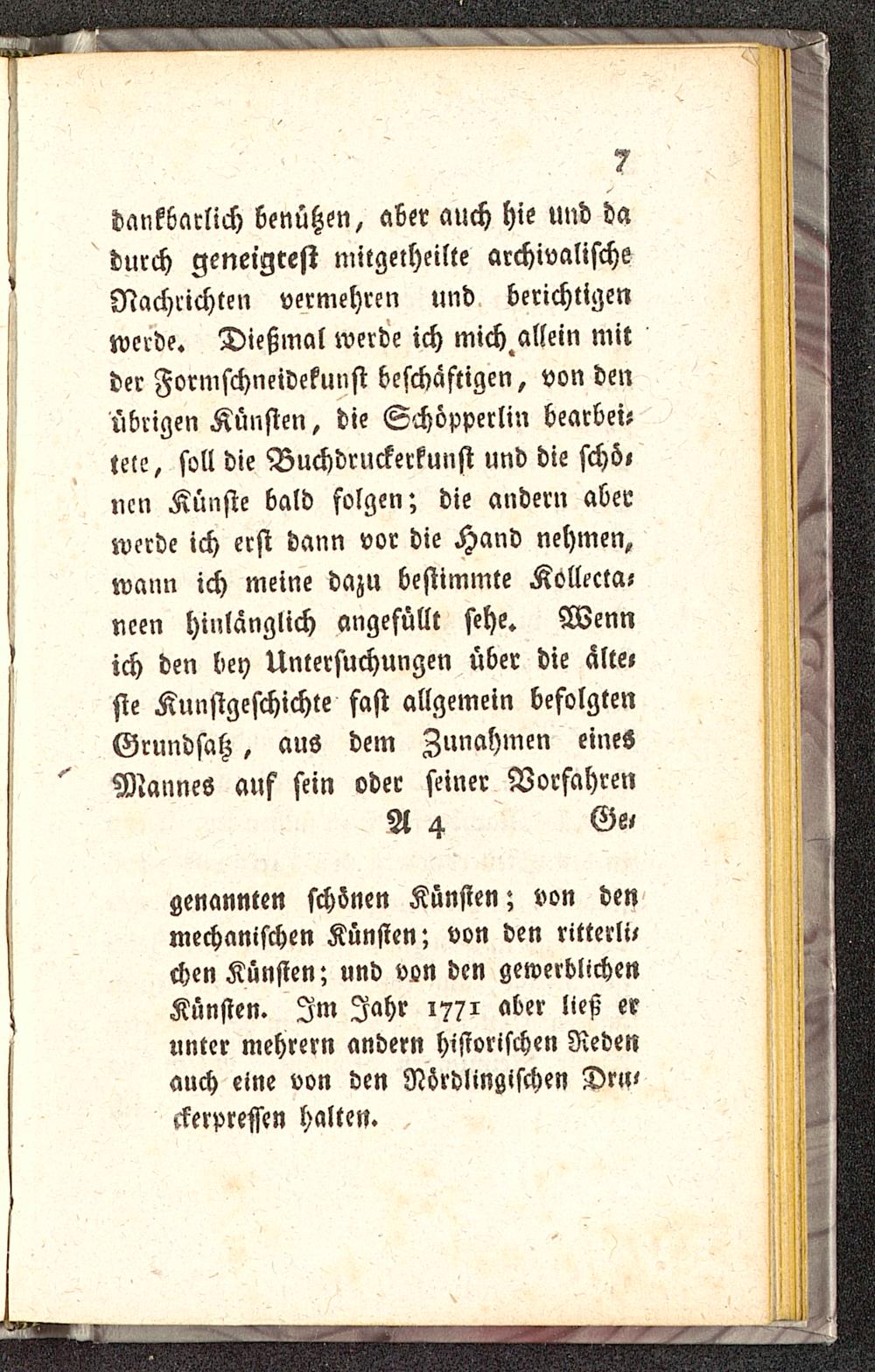 genannten schönen Künsten; von denmechanischen Künsten; von den ritterli,chen Künsten; und von den gewerblichenKünsten. Im Jahr 1771 aber ließ erunter mehrern andern historischen Nebenauch eine von den Nörolingischen Dn»<ckerpressen halten. .