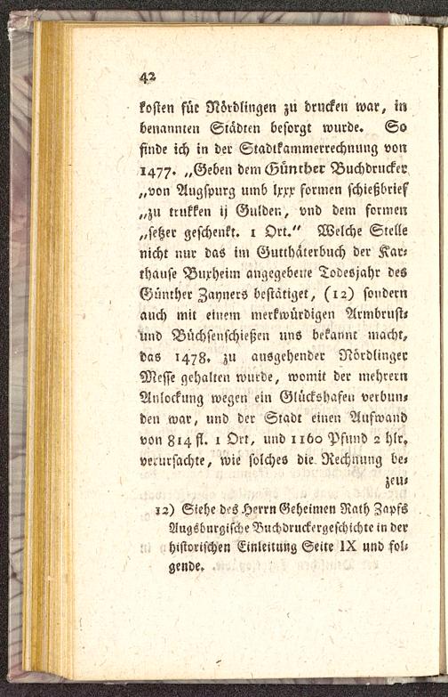 12) Siehe d'.'s H-'rrn Geheimen Rath ZnpfsAugsburgische Buchdruckergeschichlc in derhistorischen Einleitung Seite IX und fol-gende.