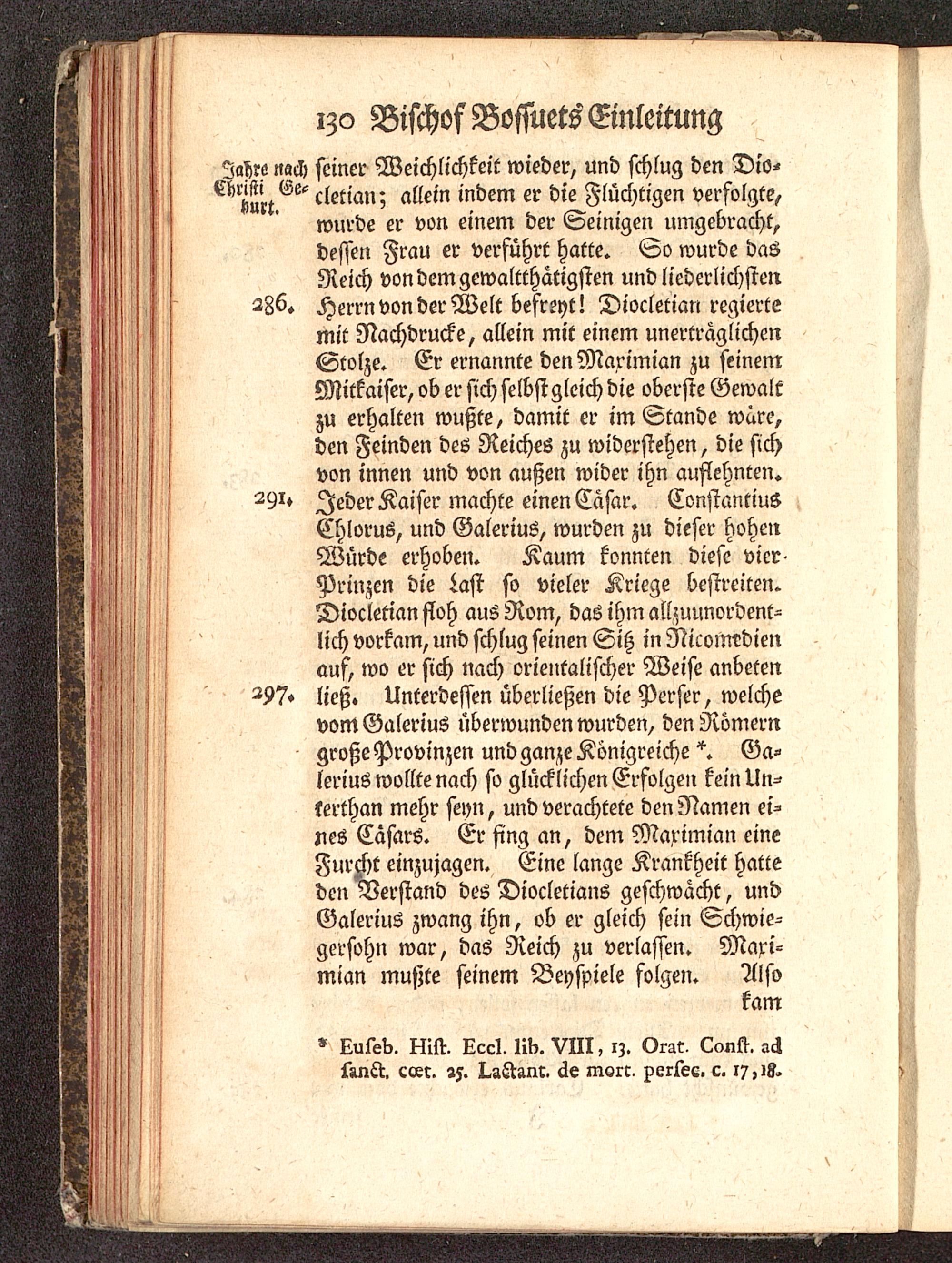 286. Herrn von der Welt befreyt! Diocletian regiertemit Nachdrucke, allein mit einem unerträglichenStolze. Er ernannte den Maximian zu seinemMitkaiser, ob er sich selbstgleich die oberste Gewaltzu erhalten wußte, damit er im Stande wäre,den Feinden des Reiches zu widerstehen, die sichvon innen und von außen wider ihn auflehnten.