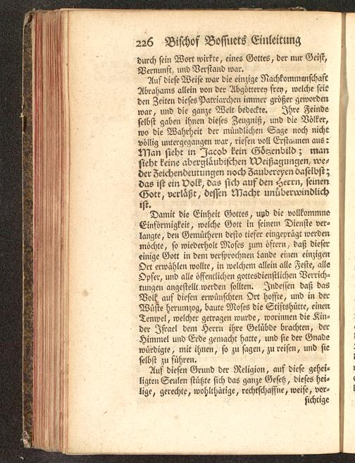 Auf diese Weise war die einzige NachkommenschaftAbrahams allein von der Abgötterei) frey, welche seitden Zeiten dieses Patriarchen immer größer gewordenwar, und die ganze Welt bedeckte. Ihre Feindeselbst gaben ihnen dieses Zeugniß, und die Völker,wo die Wahrheit der mündlichen Sage noch nichtvöllig untergegangen war, riefen voll Erstaunen aus:N7an siehe in Jacob kein Göyendild; mansieht keine abergläubischen Nleißagungen, we-der Zeichendeumngen noch Zaubereyen daselbst;das ist ein Volk, das sich auf den Herr,?, seinenGott, verlaßt, dessen Macht unüberwindlichist-