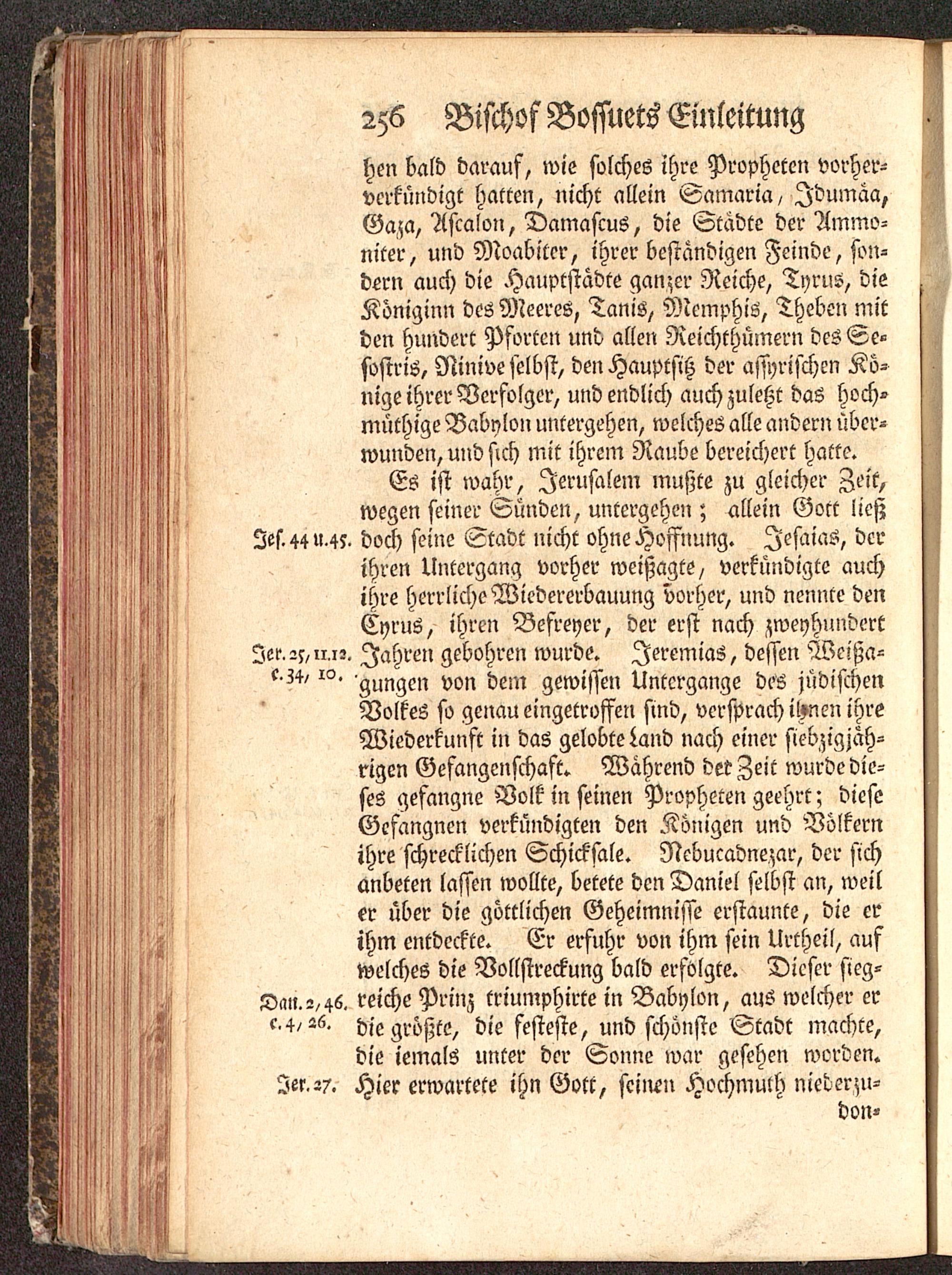 Ier> 25, ii.i-. Iahren gebohren wurde. Jeremias, dessen Weißa-c.Z4/10. 'gingen von dem gewissen Untergänge des jüdischenVolkes so genau eingetroffen sind, versprach itznen ihreWiederkunft in das gelobte Land nach einer siebzigjäh-rigen Gefangenschaft. Wahrend der Zeit wurde die-ses gefangne Volk in seinen Propheten geehrt; dieseGefangnen verkündigten den Königen und Völkernihre schrecklichen Schicksale. Nebucadnezar, der sichanbeten lassen wollte, betete den Daniel selbst an, weiler über die göttlichen Geheimnisse erstaunte, die erihm entdeckte. Er erfuhr von ihm sein Urtheil, aufwelches die Vollstreckung bald erfolgte. Dieser sieg-
