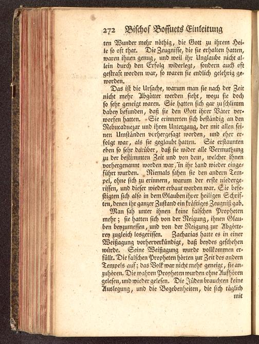 Man sah unter ihnen keine falschen Prophetenmehr; sie hatten sich von der Neigung, ihnen Glau-ben beyzumcssen, und von der Neigung zur Abgötte-rey zugleich losgerissen. Zacharias hatte es in einerWeißagung vorherverkündigt, daß beydes geschehenwürde. Seine Weißagung wurde vollkommen er-füllt. Die falschen Propheten hörten zur Zeit des andernTempels auf; das Volk war nicht mehr geneigt, sie an-zuhören. Die wahre«? Propheten wurden ohne Aufhörengelesen, und wieder gelesen. Die Juden brauchten keineAuslegung, und die Begebenheiten, die sich täglich