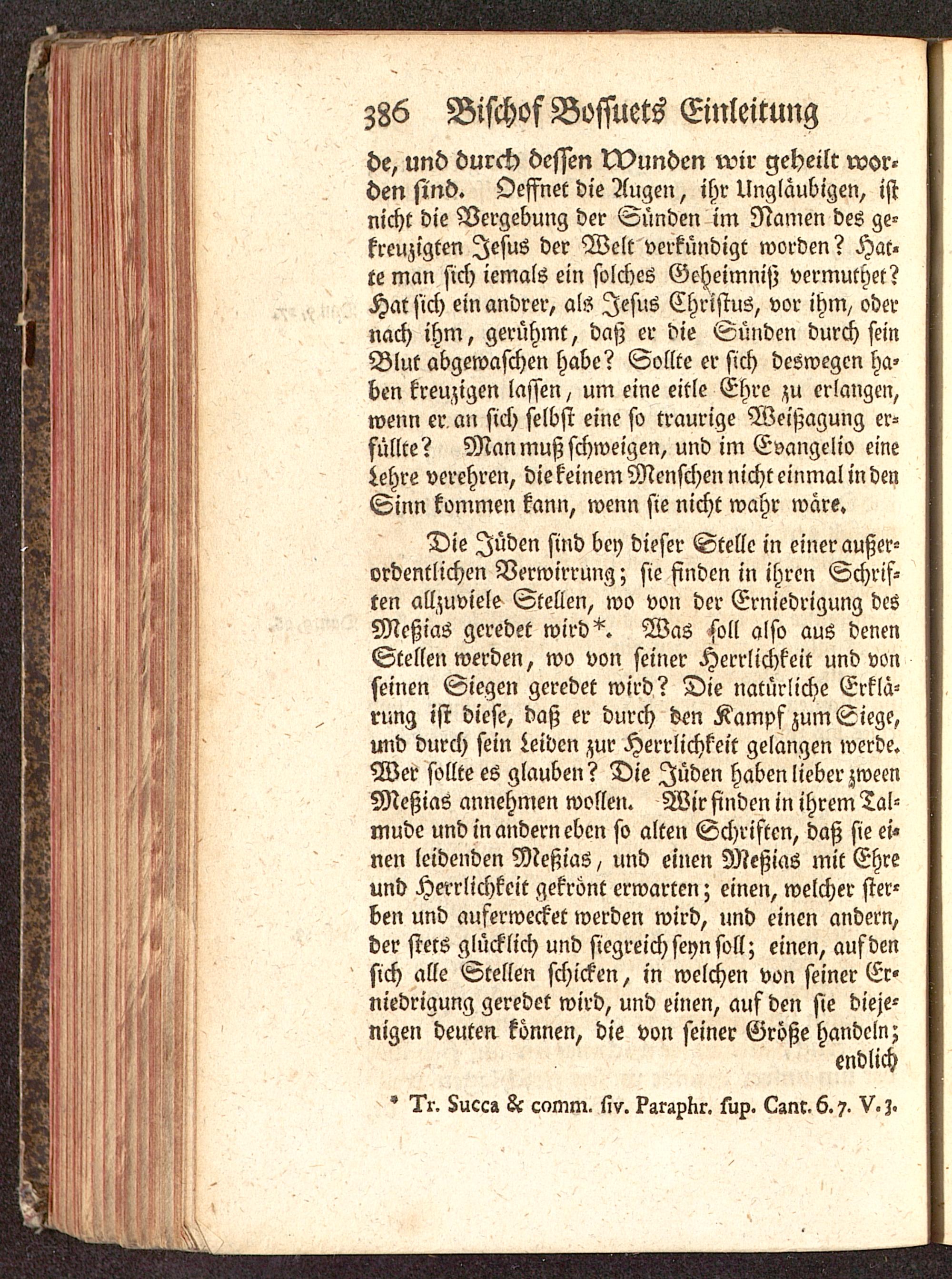 Die Jüden sind bey dieser Stelle in einer außer-ordentlichen Verwirrung; sie finden in ihren Schrif-ten allzuviel? Stellen, wo von der Erniedrigung desMeßias geredet wird^. Was soll also aus denenStellen werden, wo von seiner Herrlichkeit und vonseinen Siegen geredet wird? Die natürliche Erklä-rung ist diese, daß er durch den Kampf zum Siege,und durch sein Leiden zur Herrlichkeit gelangen werde.Wer sollte es glauben? Die Jüden haben lieber zweenMeßias annehmen wollen. Wir finden in ihrem Tal-mude und in andern eben so alten Schriften, daß sie ei-nen leidenden Meßias, und einen Meßias mit Ehreund Herrlichkeit gekrönt erwarten; einen, welcher ster-ben und auferwecket werden wird, und einen andern,der stets glücklich und siegreich seyn soll; einen, aufdensich alle Stellen schicken, in welchen von seiner Er-niedrigung geredet wird, und einen, auf den sie dieje-nigen deuten können, die von seiner Größe handeln;