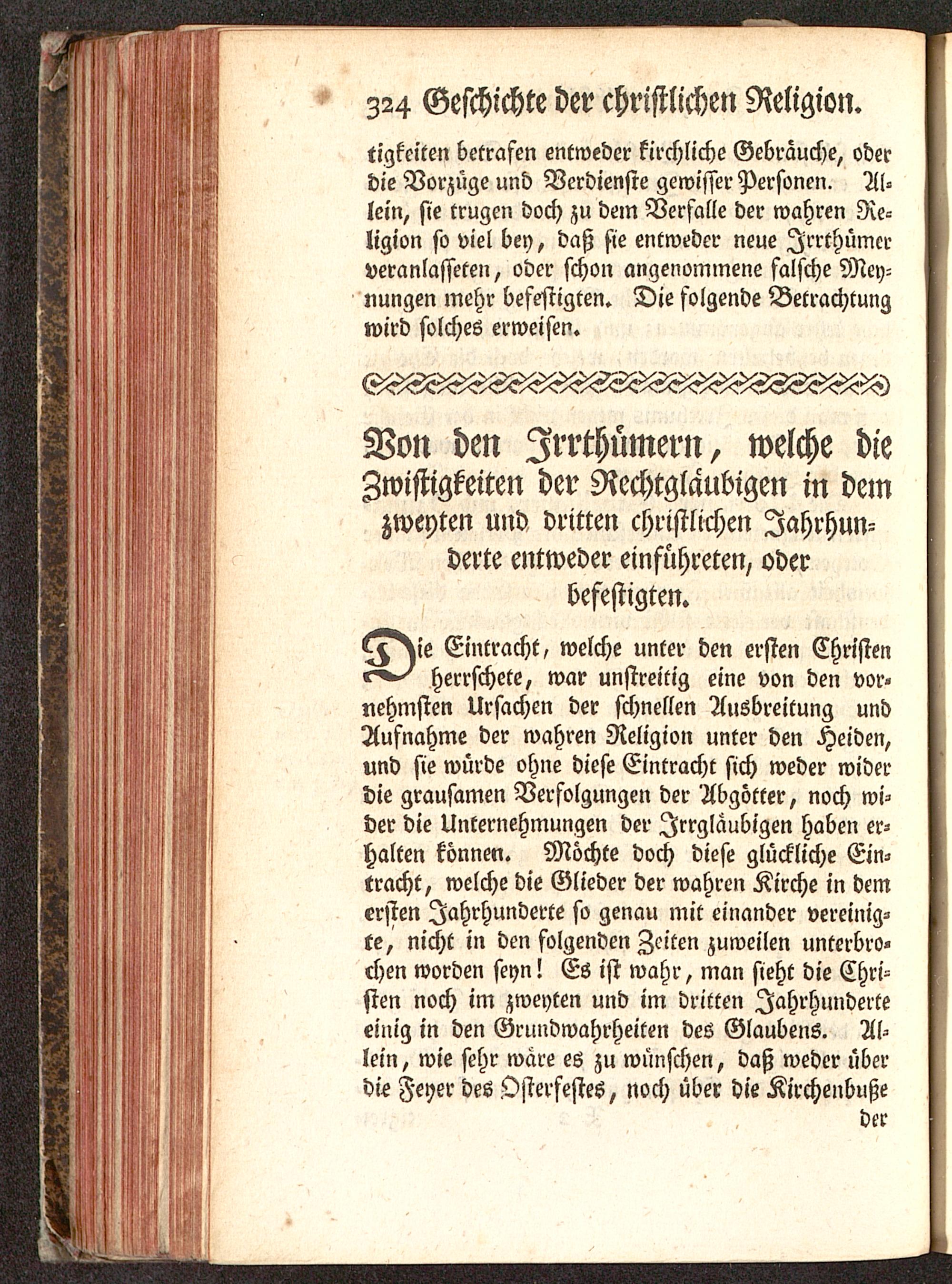 ^^ie Eintracht, welche unter den ersten Christen«^-^ herrschete, war unstreitig eine von den vor-nehmsten Ursachen der schnellen Ausbreitung undAufnahme der wahren Religion unter den Heiden,und sie würde ohne diese Eintracht sich weder widerdie grausamen Verfolgungen der Abgötter, noch wi-der die Unternehmungen der Irrgläubigen haben er-halten können. Möchte doch diefe glückliche Ein-tracht, welche die Glieder der wahren Kirche in demersten Jahrhunderte so genau mit einander vereinig-te, nicht in den folgenden Zeiten zuweilen unterbro-chen worden seyn! Es ist wahr, man sieht die Chri-sten noch im zweyten und im dritten Jahrhunderteeinig in den Grundwahrheiten des Glaubens. Al-lein, wie sehr wäre es zu wünschen, daß weder überdie Feyer des Osterfestes, noch über die Kirchenbuße
