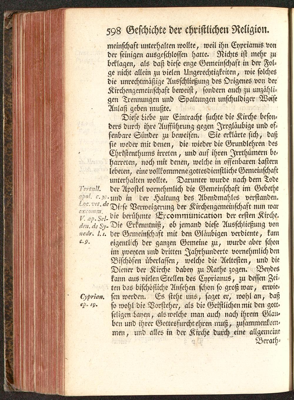 meinschaft unterhalten wollte, weil ihn Cyprianus vonder seinigen ausgeschlossen hatte. Nichts ist mehr zubeklagen, als daß diese enge Gemeinschaft in der Fol-ge nicht allein zu vielen Ungerechtigkeiten, wie solchesdie unrechtmäßige Ausschließung des Origenes von derKirchengemeinschaft beweist, sondern auch zu unzahli-gen Trennungen und Spaltungen unschuldiger WeiseAnlaß geben mußte.