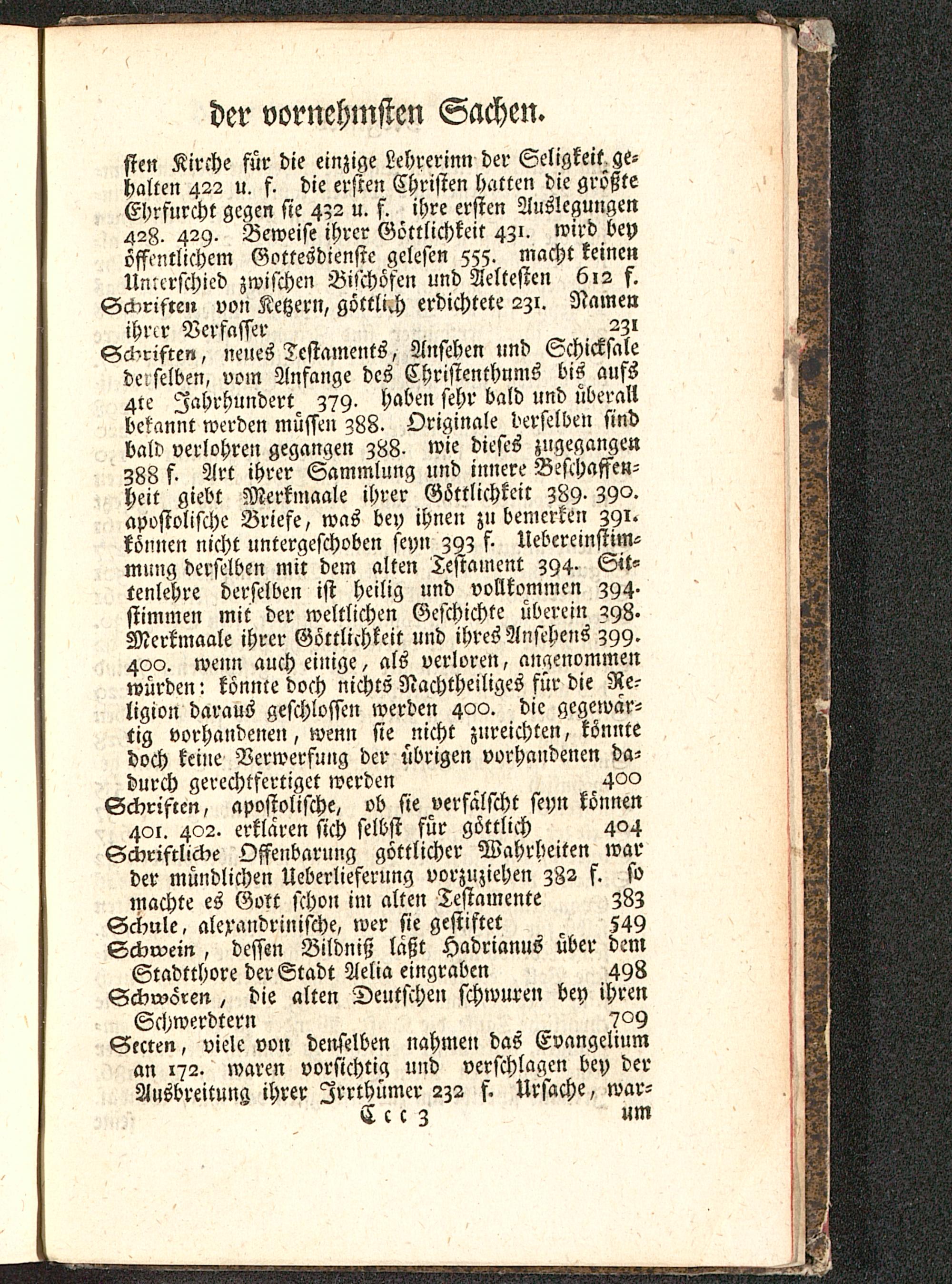 Schriften, neues Testaments, Ansehen und Schicksalederselben, vom Anfange des Christenthums bis aufs4te Jahrhundert Z79. haben fehr bald und überallbekannt werden müssen z88- Originale derselben sindbald verlohren gegangen z88- wie dieses zugegangenz88 f- Art ihrer Sammlung und innere Beschaffen-heit giebt Merkmaale ihrer Göttlichkeit Z89. 39«.apostolische Briefe, was bey ihnen zu bemerken 391.können nicht untergeschoben seyn 39z f. Uebereinstim-mung derselben mit dem alten Testament Z94. Sit-tenlehre derselben ist heilig und vollkommen Z94.stimmen mit der weltlichen Geschichte überein Z98.Merkmaale ihrer Göttlichkeit und ihres Ansehens Z99.