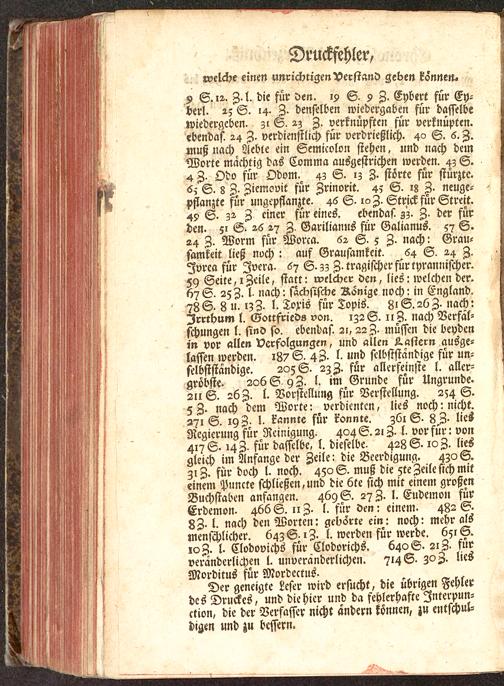 4 Z- Odo für Odom.^ 4Z S. -z Z. störte für stürzte.6; S- 8 Z- Ziemovit für Zrinorit. 4; S- -8 Z- neuge-pflanzte für ungepflanzte. 46 S- -o Z. Strick für Streit.45 S- Z2 Z einer für eines, ebendas Z'z. Z> der fürden. 51 S- 26 27 A, Garilianns für Galianus. 57 S.24 Z. Worin für Worca. 6^ S- 5 Z- «ach: Grau-samkeit ließ noch: auf Grausamkeit. 64 S. 24 I.Jvrca für Jvera- 67 S- zz Z- tragischer für tyrannischer.59 Seite, 1 Zeile, statt: welcher den, lies: welchen der.67 S. 25 Z. l- »ach: sächsische Ronige noch: in England .78 S. 8 u. izZ. l. Toris für Topis. 8- S. 26 Z. nach:Irrthum l. Gottfrieds von. 132 S. 11 ?. nach Verfäl-schungen l. sind so. ebendas. 21, 22 Z. müssen die beydenin vor allen Verfolgungen, und allen Lastern ausge-lassen werden. 187 S. 4 Z. l. und selbststandige für un-ftlbststandige. 205 S- 2z Z. für allerfeinste l. aller-gröbste. 206 S 9 Z. l. im Grunde für Ungrunde.2li S- 26 Z. l. Vorstellung für Verstellung. 254 S-
