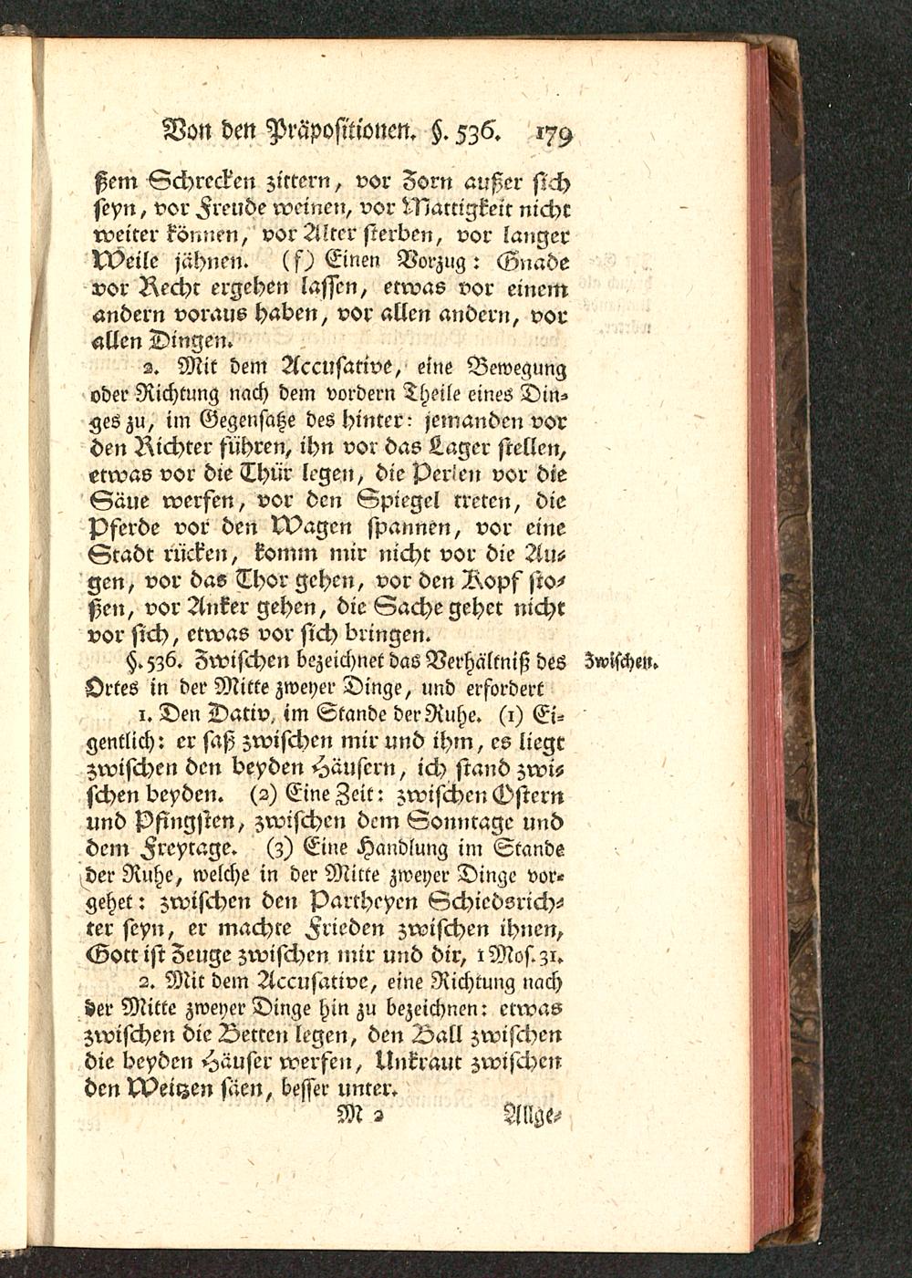 §. 536. Zwischen bezeichnet das Verhältniß des Zwischen.Ortes in der Mitte zweyer Dinge, und erfordert