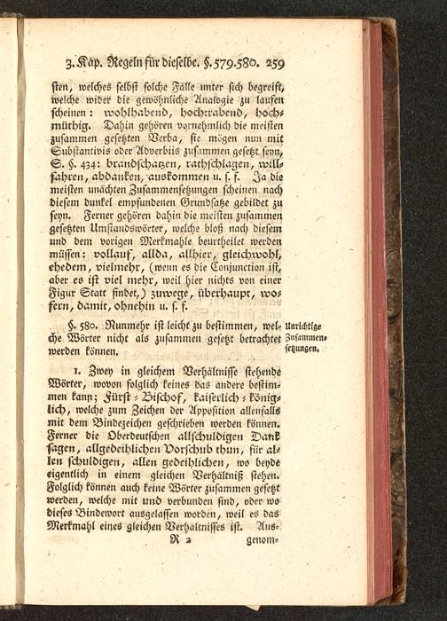 1. Zwey in gleichem Verhältnisse stehendeWörter, wovon folglich keines das andere bestim-men kann; Fürst 5 Bischof, kaiserlich - könig-lich, welche zum Zeichen der Apposition allenfallsmit dem Bindezeichen geschrieben werden können.Ferner die Oberdeutschen allschuldigen Dank-fagen, allgedeihlichen Vorschub thun, für al-len schuldigen, allen gedeihlichen, wo beydeeigentlich in einem gleichen Verhältniß stehen.Folglich können auch keine Wörter zusammen gesetztwerden, welche mit und verbunden sind, oder wodieses Bindewort ausgelassen worden, weil es dasMerkmahl eines gleichen Verhältnisses ist. Aus-