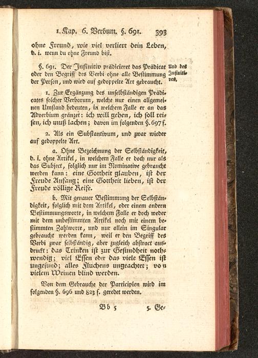 §. 691. Der Infinitiv piädicieret das Prädicat Und de«oder den Begriff des Verbi ohne alle Bestimmung 2»fiuiti»Her Person, und wird auf gedoppelte Art gebraucht.