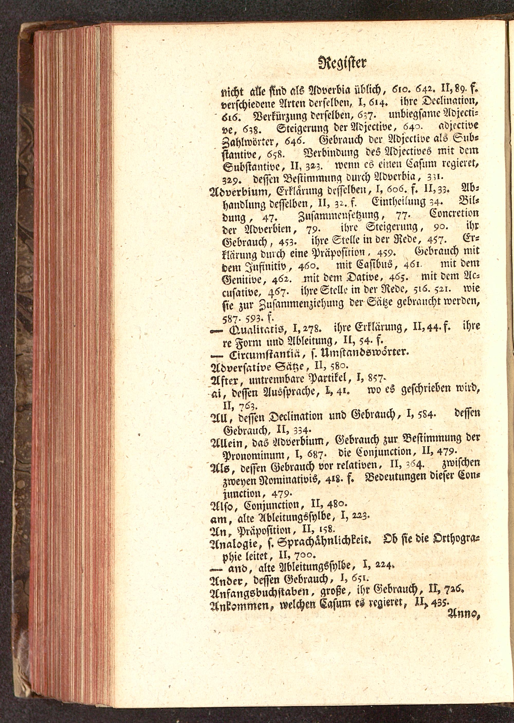 Analogie, s. Sprachahnlichkeit. Ob sie die Orthogra-phie leitet, II, 700.— and, alte Ableitungssylbe, l, 224.Ander, dessen Gebrauch, 1, 651.Anfangsbuchstaben, große, ihr Gebrauch, 11,726«Ankommen, welchen Easum eö regieret, 11,435.