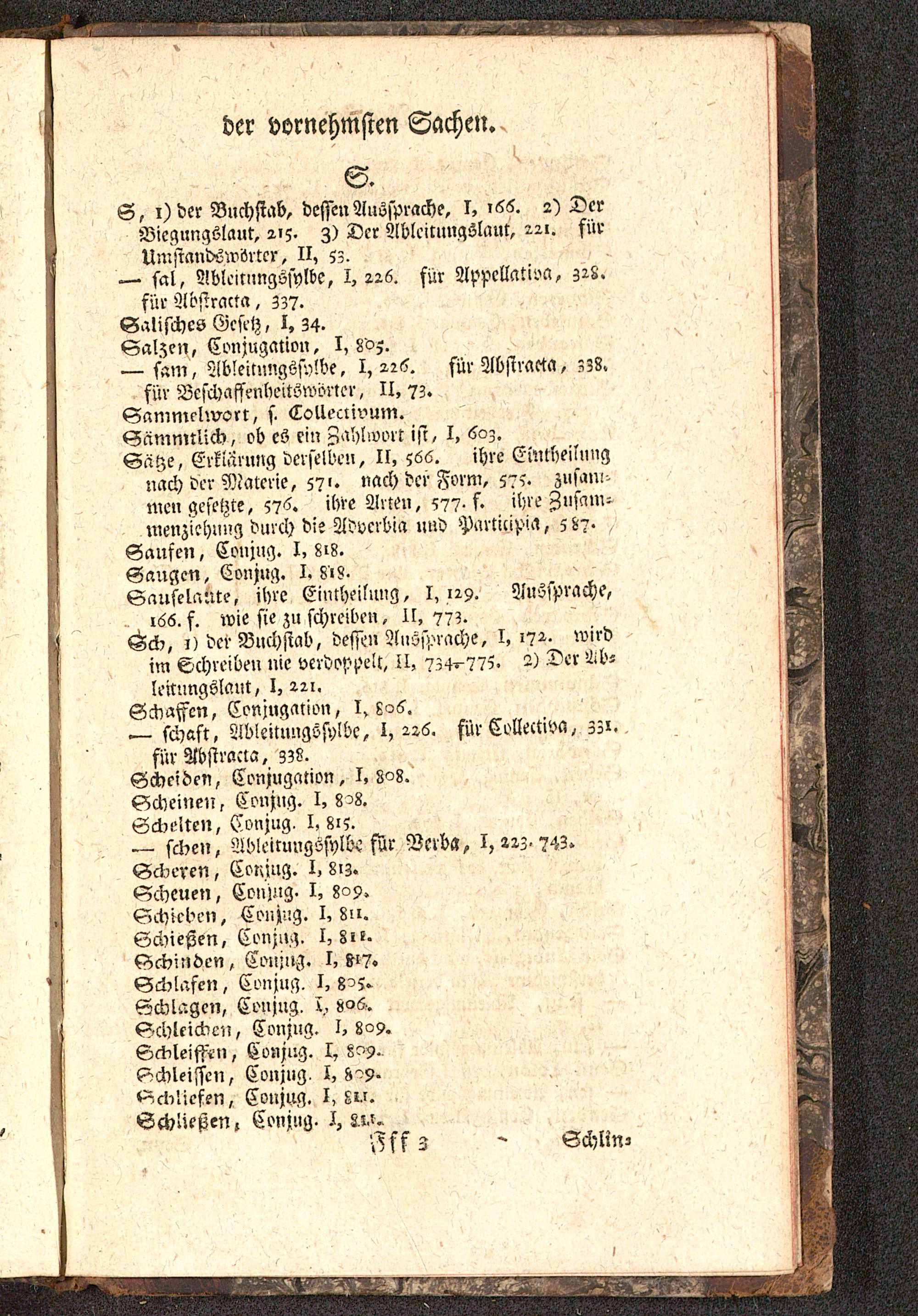 S, i)der Buchstab, dessen Aussprache, I, '66. 2) DerBicgungslaut, 2-5. z) Der AbleitungSlaut, 221. fürUmstandswörter, II, ;z.