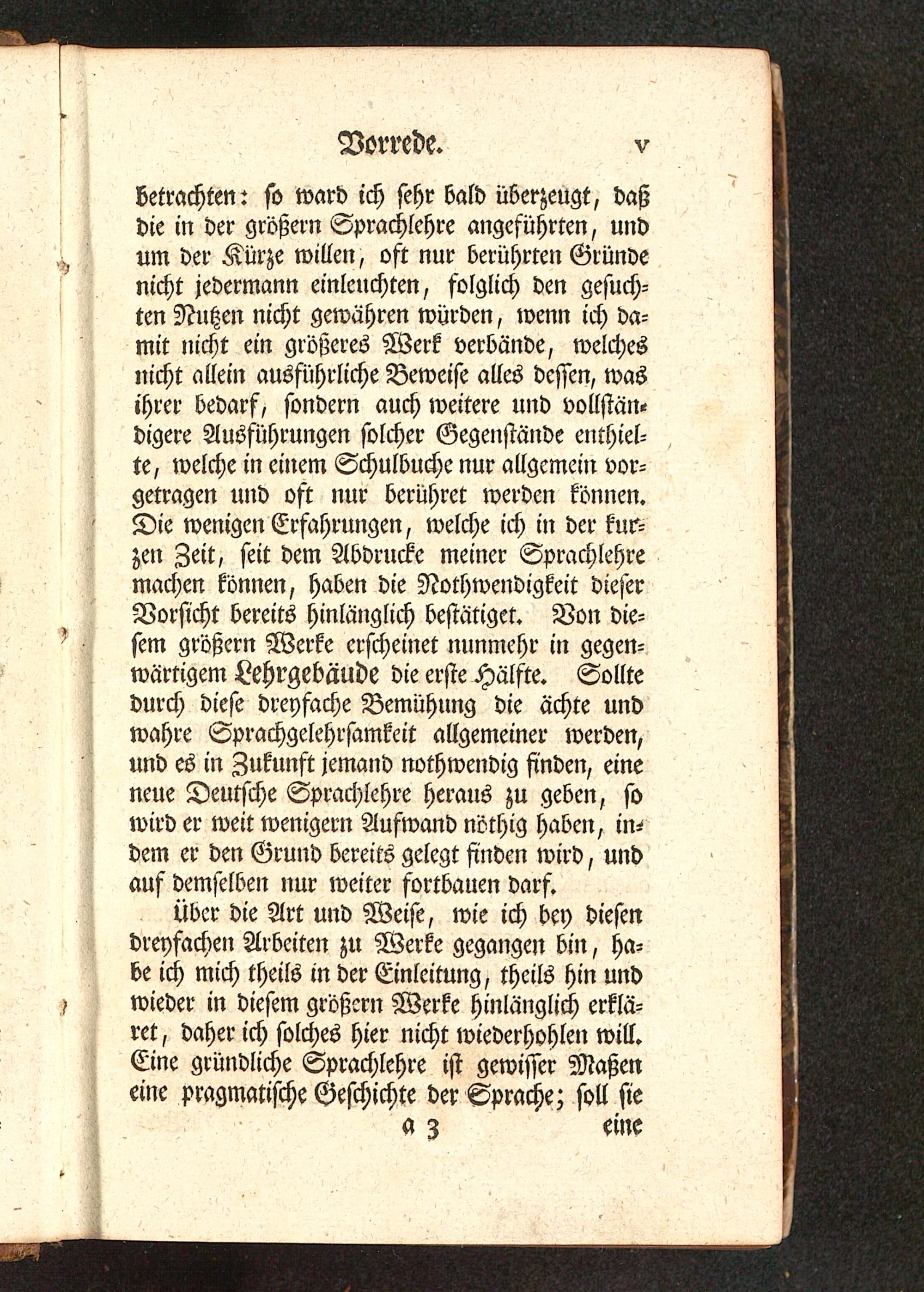 Über die Art und Weise, wie ich bey diesendreyfachen Arbeite!: zu Werke gegangen bin, ha-be ich mich theils in der Einleitung, theils hin undwieder in diesem größ-rn Werke hinlänglich erklä-ret, daher ich solches hier nicht wiederhohlen will.Eine gründliche Sprachlehre ist gewisser Maßeneine pragmatische Geschichte der Sprache; soll sie