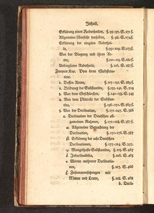 5. Von der Declination, §. 171 -247. S. 386a. Declination der Deutschen all-gemeinen Nahmen, §. 171 - 218. S. Z87 f.