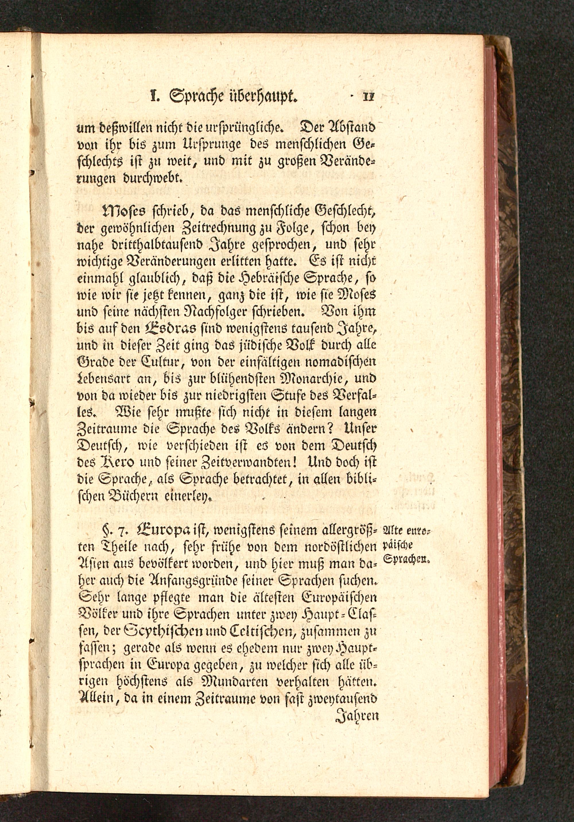 §. 7. Europa ist, wenigstens seinem allergröß- Alte eure?ten Theile nach, sehr frühe von dem nordöstlichen McheAsien aus bevölkert worden, und hier muß man da- Sprache-,her auch die Anfangsgründe seiner Sprachen suchen.Sehr lange pflegte man die ältesten EuropäischenVölker und ihre Sprachen unter zwey Haupt-Clas-sen, der Ecythischenund Leitischen, zusammen zufassen; gerade als wenn es ehedem nur zwey Haupt-sprachen in Europa gegeben, Zu welcher sich alle üb-rigen höchstens als Mundarten verhalten hätten.Allein, da in einem Zeiträume von fast zweytausend