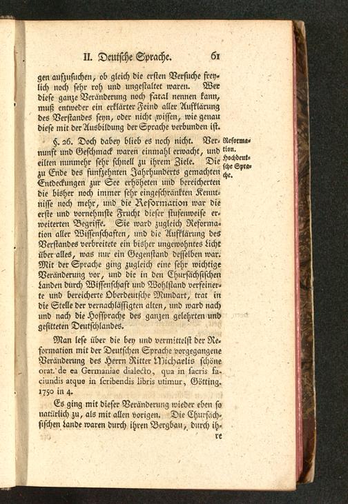 Man lese über die bey und vermittelst der Re-formation mit der Deutschen Sprache vorgegangeneVeränderung des Herrn Ritter Nnchaelis schöneorar.'äe (Zeruiauise ciigle6to, c^ua in iscris ta-ciuuais st^us in IcriKenciis likriz utimur, Götting.1750 in 4.