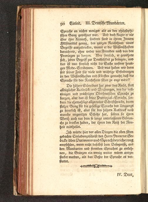Die höhere Schreibart hat zwar das Recht, stattalltäglicher Aufdrücke und Wendungen, von der voll-tönigen und prächtigen Oberdeutschen Sprache zuborgen, aber das ist keine Provinzial-Sprache, son-dern die ehemahlige allgemeine Schriftsprache, derenstolzer Gang für die gesellige Sprache des Umgangszu feyerlich ist, aber für den höhern Ausdruck nochmanche ungenützte Schätze hat, sollten sie ihrenWerth auch nur dem so lange unterlassenen Gebrau-che zu danken haben, der ihnen den Reitz der Neu-heit mittheilet.