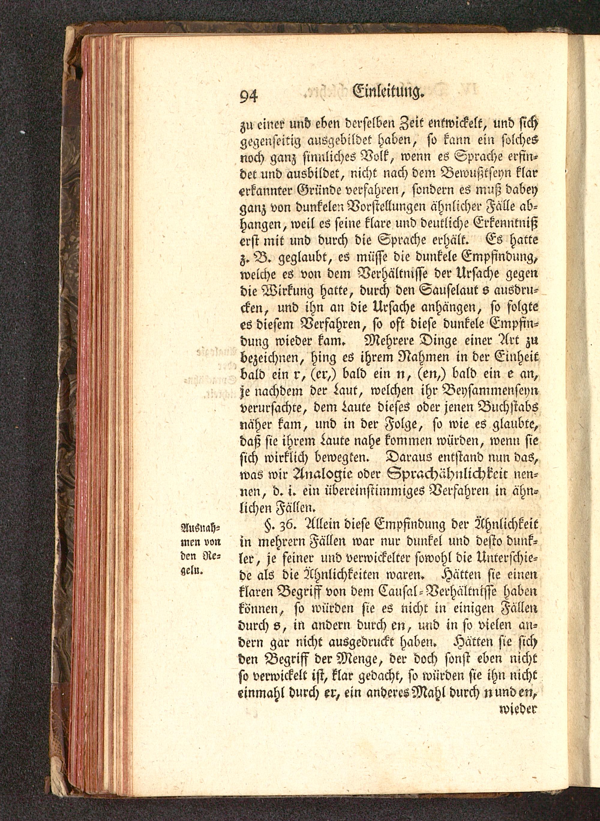 Ausnah- §' ?6. Allem diese Empfindung der Ähnlichkeitmcn von in mehrern Fällen war nur dunkel und desto dunk-dcn Re- ^ ^ ^ f^ner und verwickelter sowohl die Unterschie-de als die Ähnlichkeiten waren. Hätten sie einenklaren Begriff von dem Causal -Verhältnisse habenkönnen, so würden sie es nicht in einigen Fällendurch s, in andern durch en, und in so vielen an-dern gar nicht ausgedruckt haben. Hätten sie sichden Begriff der Menge, der doch sonst eben nichtso verwickelt ist, klar gedacht, so würden sie ihn nichteinmahl durch er, ein anderes Mahl durch n und en,