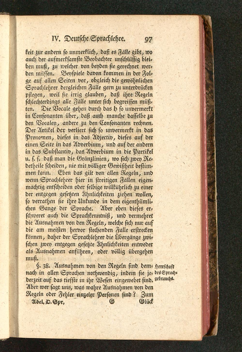§. z8. Ausnahmen von den Regeln sind dem- Herrschaftnach in allen Sprachen nothwendig, indem sie je-dcsSprach-derzeit auf das tiefste m ihr Wesen eingewebet sind. Strauchs.Aber wer sagt uns, was wahre Ausnahmen von denRegeln oder Fehler einzeler Personen sind? ZumASeI.S.Spr, ' G GK'ick