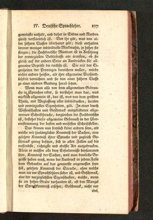Wenn man also von dem allgemeinen Gebrau-che in Sprachen redet, so verstehet man das, waswirklich allgemein ist, das ist, was von dem größtenTheile, mit Weglassung aller individuellen, localenund provinziellen Eigenheiten, gilt. In einer durchWissenschaften und Geschmack ausgebildeten allge-meinen Schriftsprache, dergleichen die Hochdeutscheist, bestehet dieser allgemeine Gebrauch in der Über-einstimmung der besten und weisesten Schriftsteller.