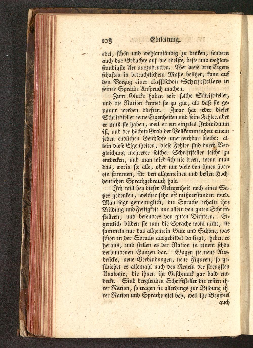 Zum Glücke haben wir solche Schriftsteller,und die Nation kennet sie zu gut, als daß sie ge-nannt werden dürften. Zwar hat jeder dieserSchriftsteller seine Eigenheiten und seine Fehler, aberer muß sie haben, weil er ein einzeleS Individuumist, und der höchste Grad der Vollkommenheit einemjeden endlichen Geschöpfe unerreichbar bleibt; al-lein diefe Eigenheiten, diese Fehler sind durch Ver-gleichung mehrerer solcher Schriftsteller leicht zuentdecken, und man wird sich nie irren, wenn mandas, worin sie alle, oder nur viele von ihnen über-ein stimmen, für den allgemeinen und besten Hoch-deutschen Sprachgebrauch hält.