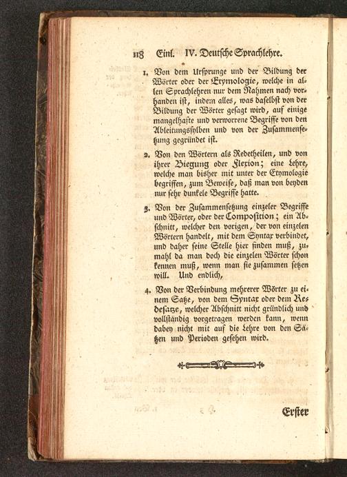 4. Von der Verbindung mehrerer Wörter zu ei-nem Satze, von dem Syntax oder demdesarze, welcher Abschnitt nicht gründlich undvollständig vorgetragen werden kann, wenndabey nicht mit auf die iehre von den Sä-tzen und Perioden gesehen wird.