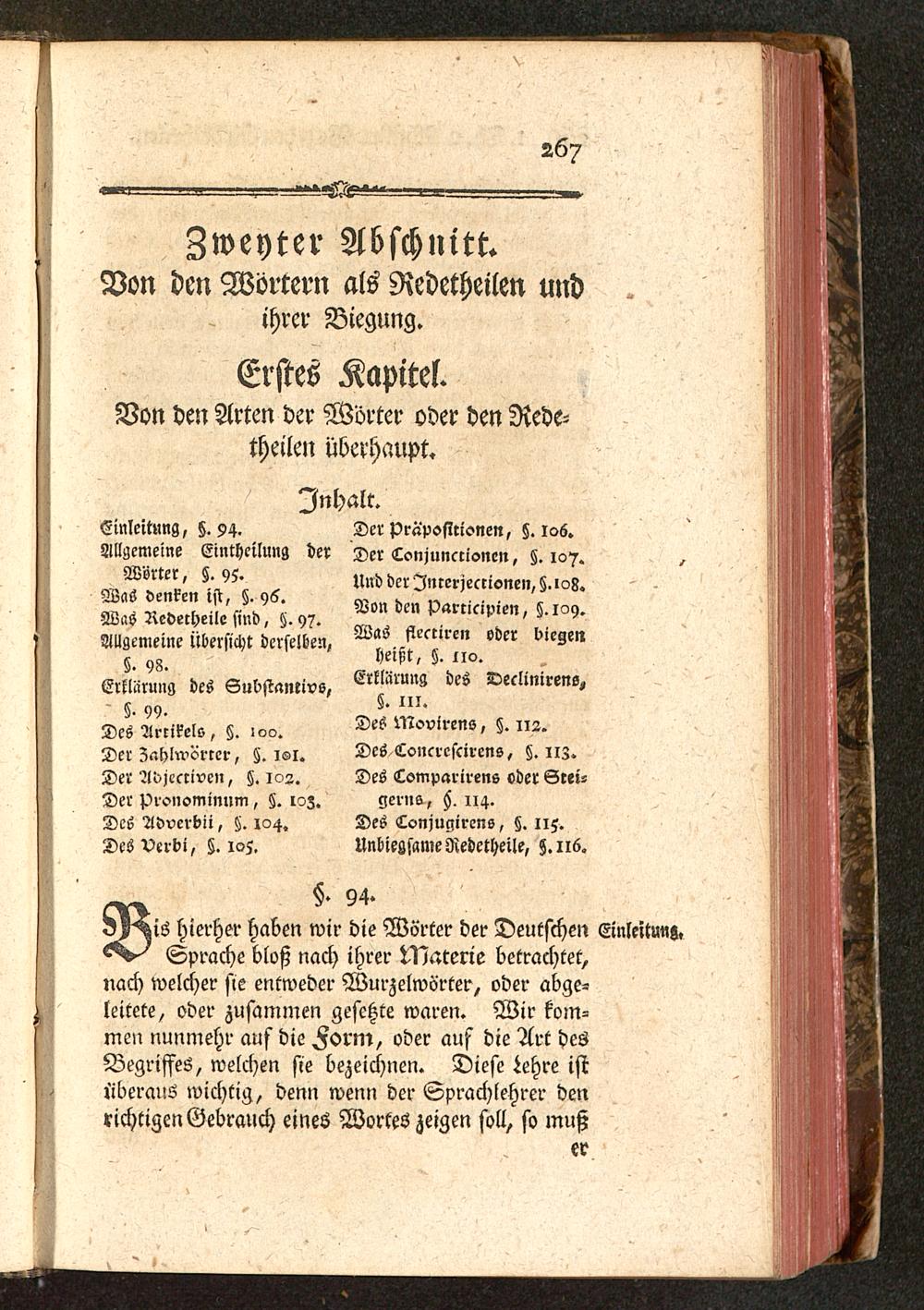 Des Artikels, Z. -oo.Der ZalM'Lrrcr, z. isl .Der ?N>iccrivcn, §. los.Der pronominum, §. i?z.Des Adverbii, tz. 104.DeS Verbi, S. 105.