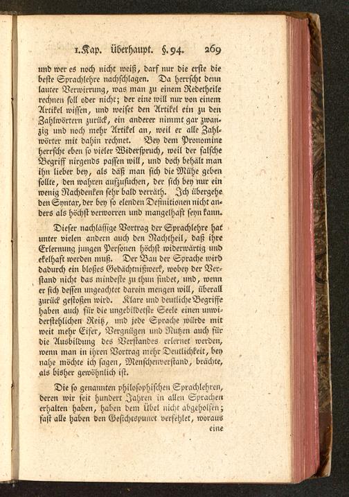 Die so genannten philosophischen Sprachlehren,deren wir seit hundert Iahren in allen Sprache»erhalten haben, haben dem Übel nicht abgeholfen;fast alle haben den GesichcSpunct verfehlet, woraus